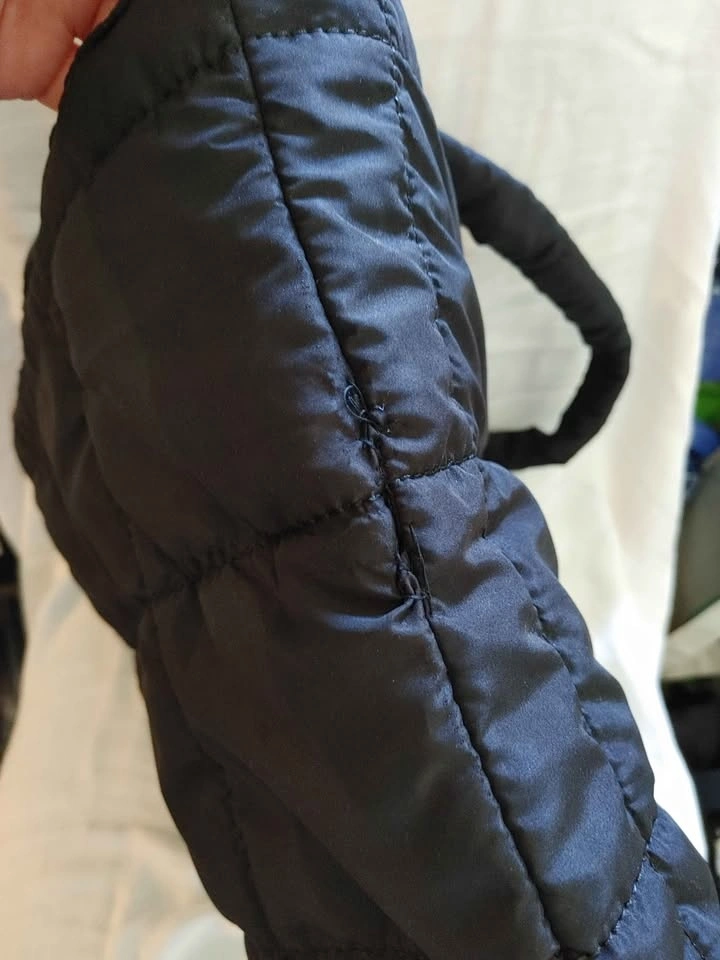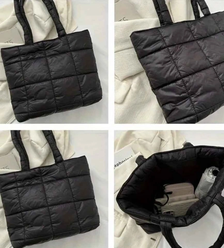 Spacious quilted puffer tote bag, soft and lightweight material. Unzippered. Measures 39cm wide, 28cm tall, and 9cm deep. Brand new with a slight sewing defect on the sides. Pick up in the Killarney community center area (6260 Killarney St, Vancouver, BC V5S 2X7).