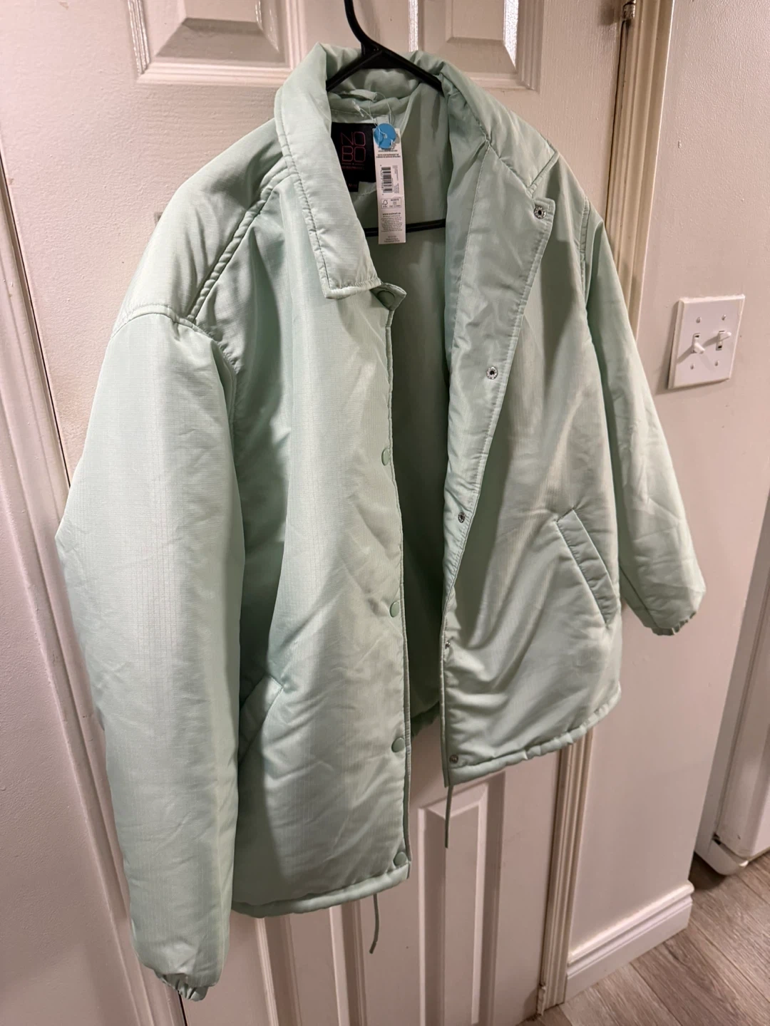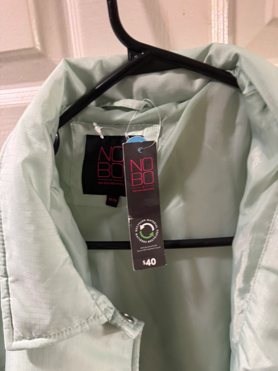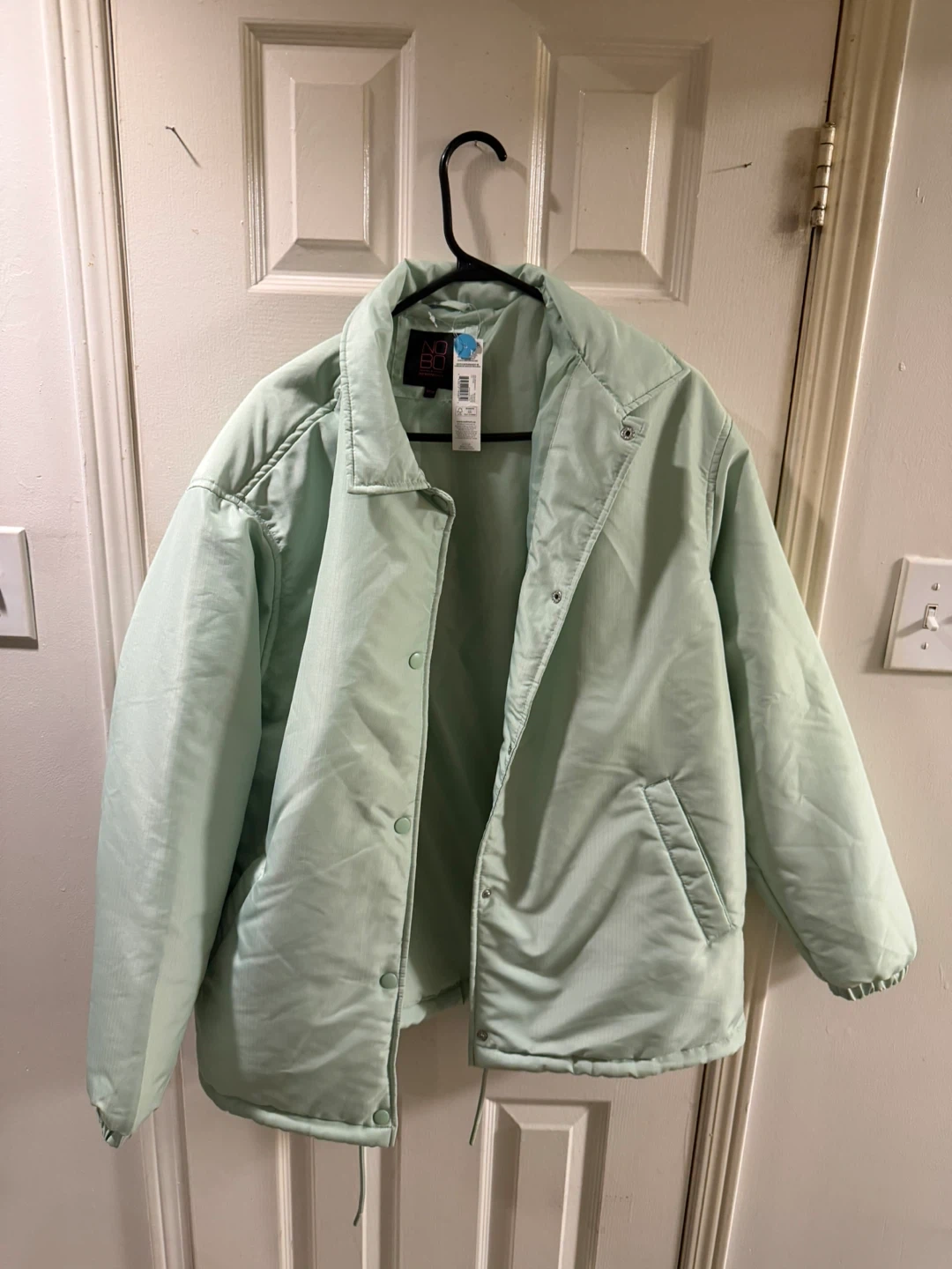 This light mint green coaches jacket from No Boundaries is a size M/M. It features adjustable drawcords. It's a great lightweight jacket for the spring or fall!