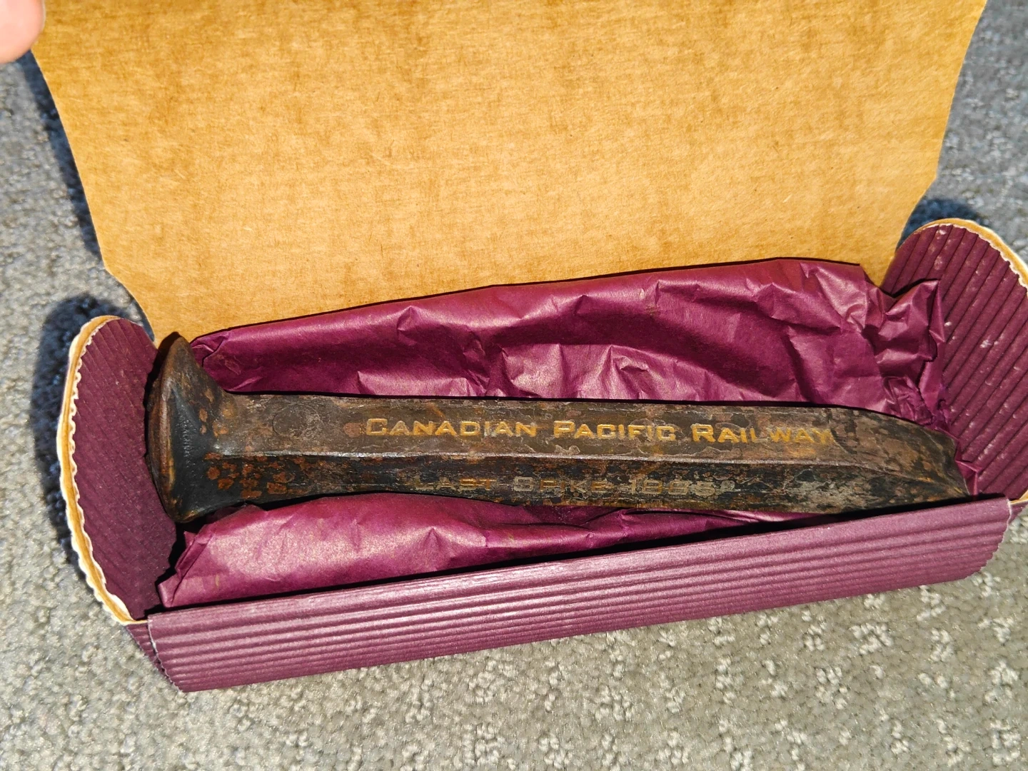 I am selling a Rare Canadian Pacific Railway "Last Spike" Commemorative (120th Anniversary) in excellent condition. Own a piece of Canadian history. This is a unique and authentic commemorative item given to Canadian Pacific Railway a few employees to mark the 120th Anniversary of the Last Spike.