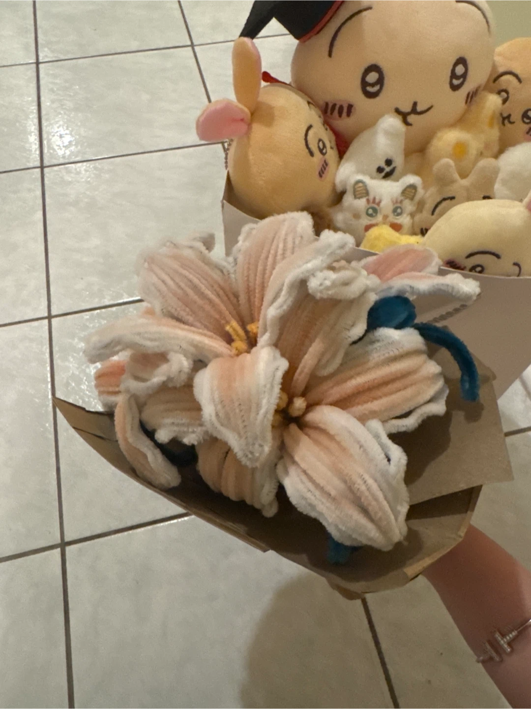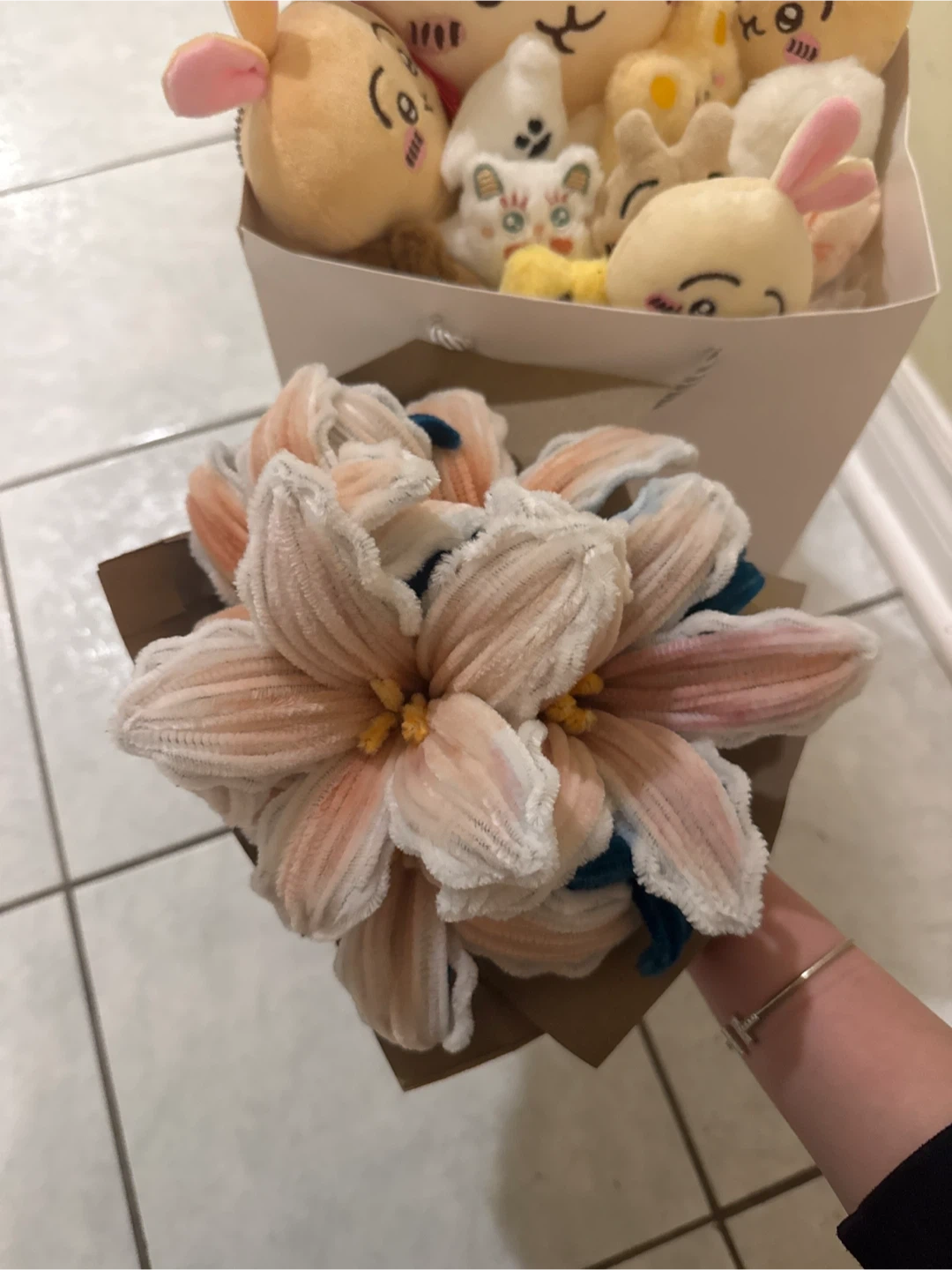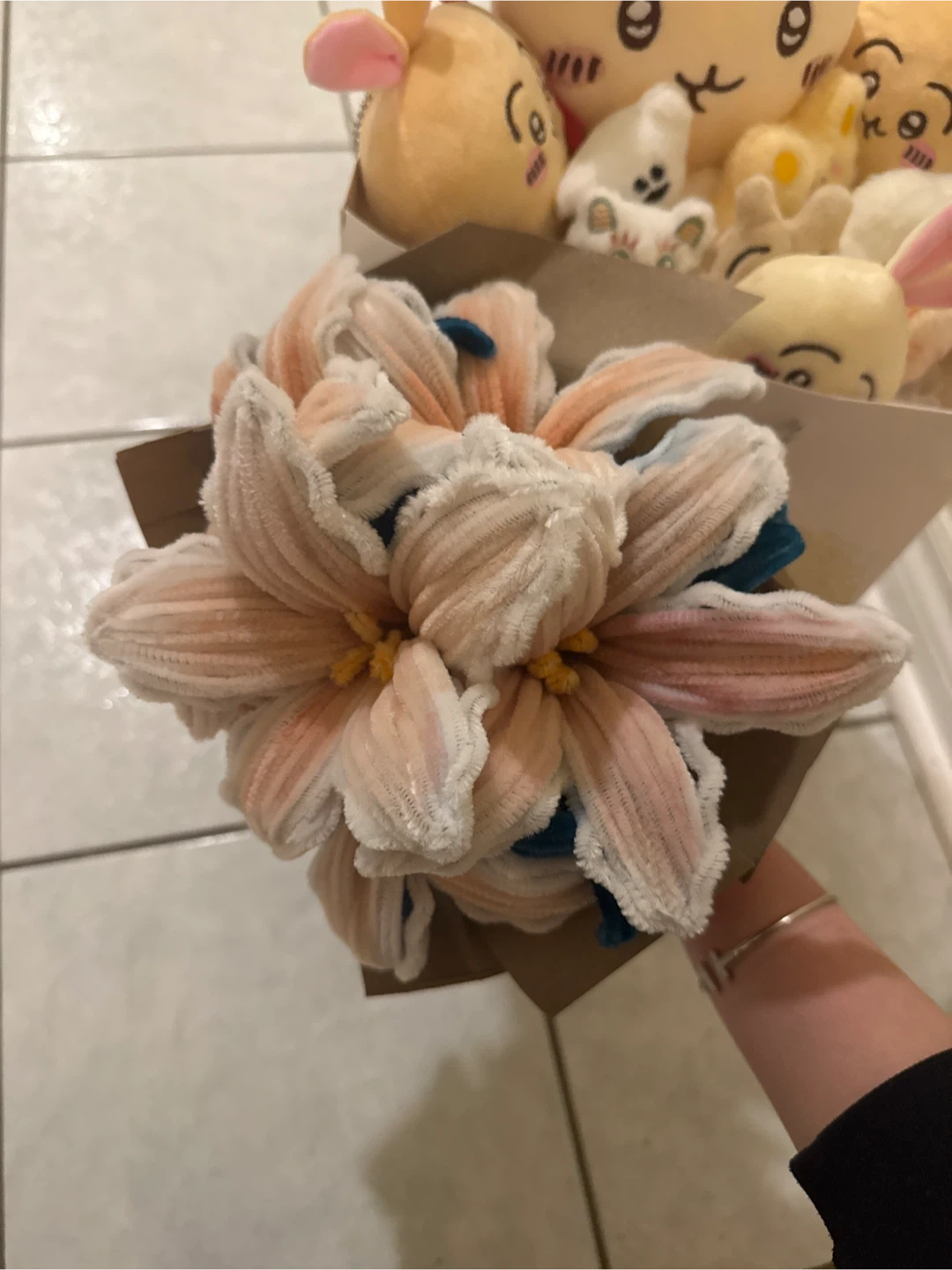 This unique bouquet features soft plush flowers wrapped in brown paper. It is DIY, and perfect for gifting or decorating, and smells amazing just like real lilies!