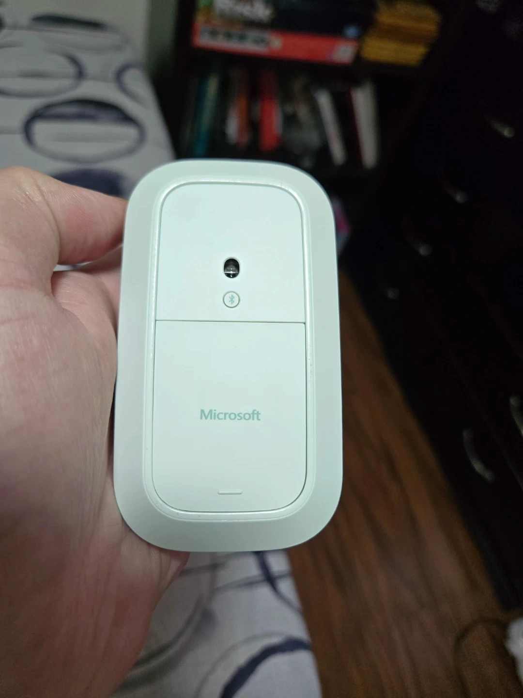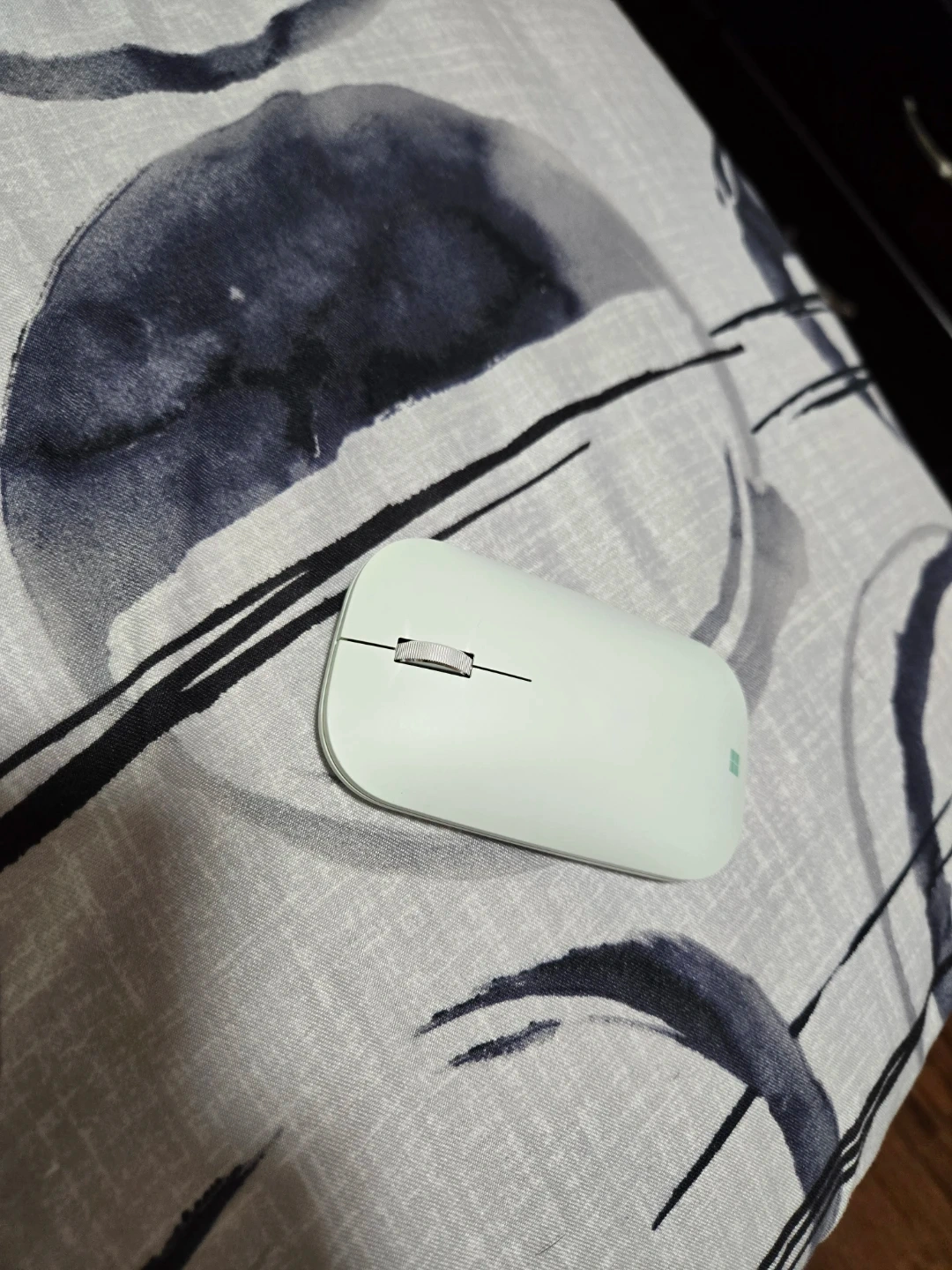 This is a Microsoft Bluetooth mouse in a light green colour. It connects wirelessly via Bluetooth. Works with most devices that support Bluetooth. Great for everyday use!
