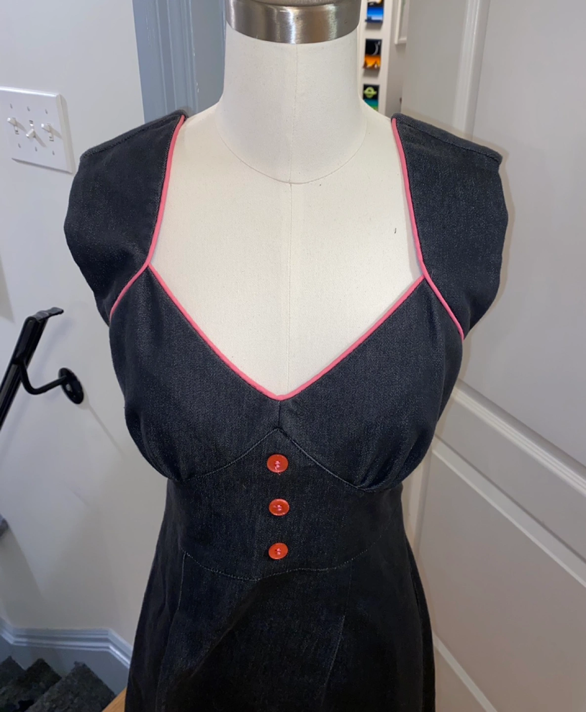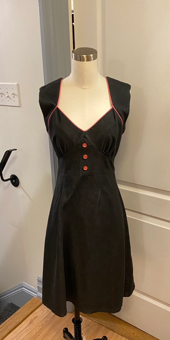 Black Denim Dress with Pink Trim