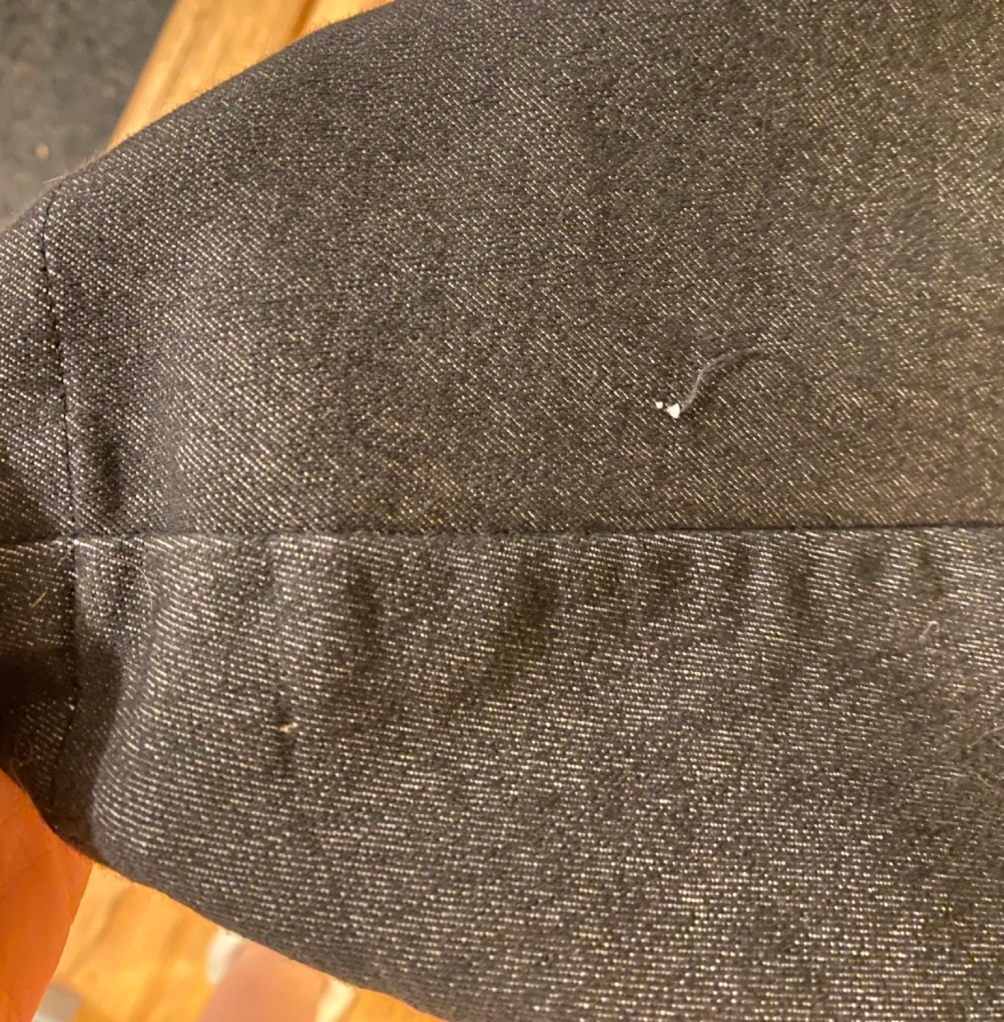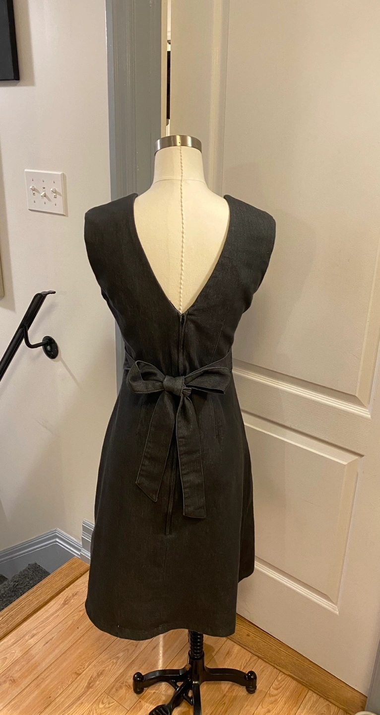 This dress is positively adorable. But I unfortunately don’t reach for it anymore. A lovely grey twill with pink piping and buttons and a classic retrofit. From a local Toronto designer, it does have one small pull, which I’ve included a photo of