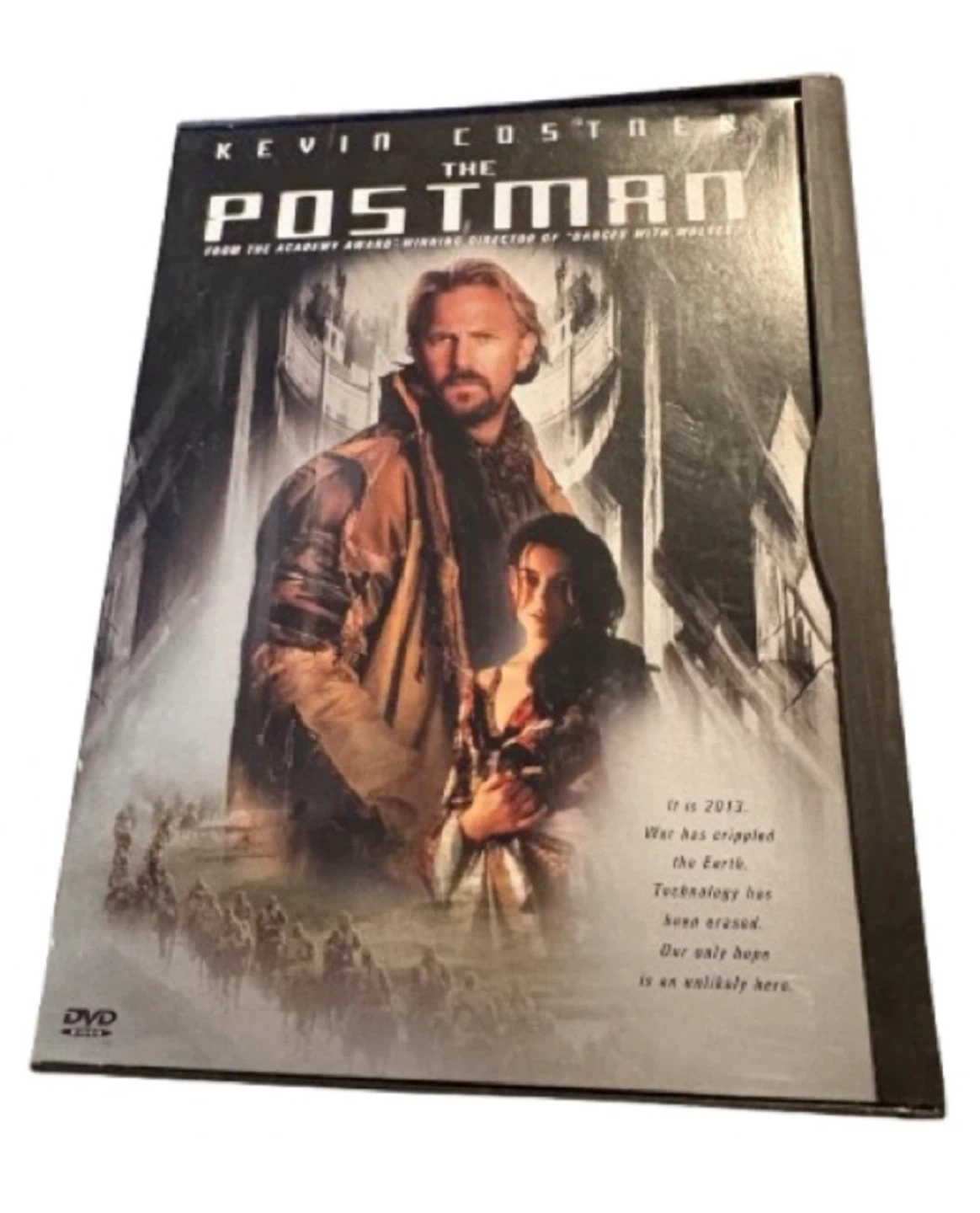 A clean, well‑kept DVD copy of The Postman, directed by and starring Kevin Costner. This dystopian action‑adventure is based on the acclaimed novel by David Brin and features a powerful story of hope and resilience.