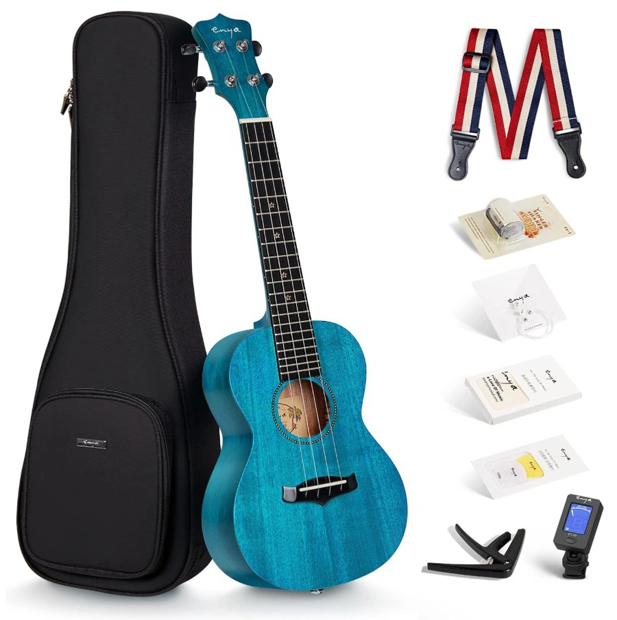 Beautiful teal Enya brand ukulele. Concert size. Includes gig bag, strap, tuner, extra strings, and picks.
