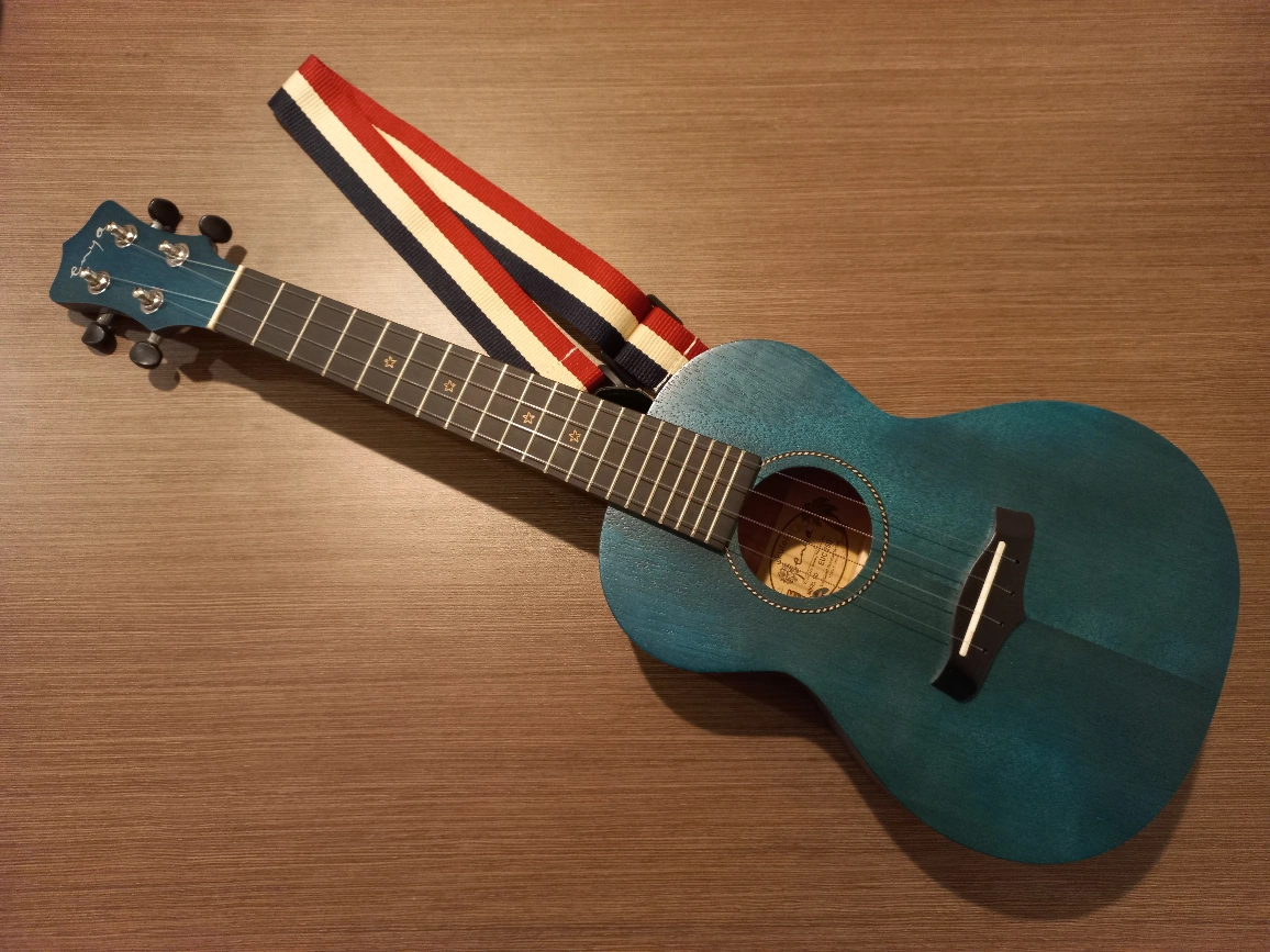 Beautiful teal Enya brand ukulele. Concert size. Includes gig bag, strap, tuner, extra strings, and picks.