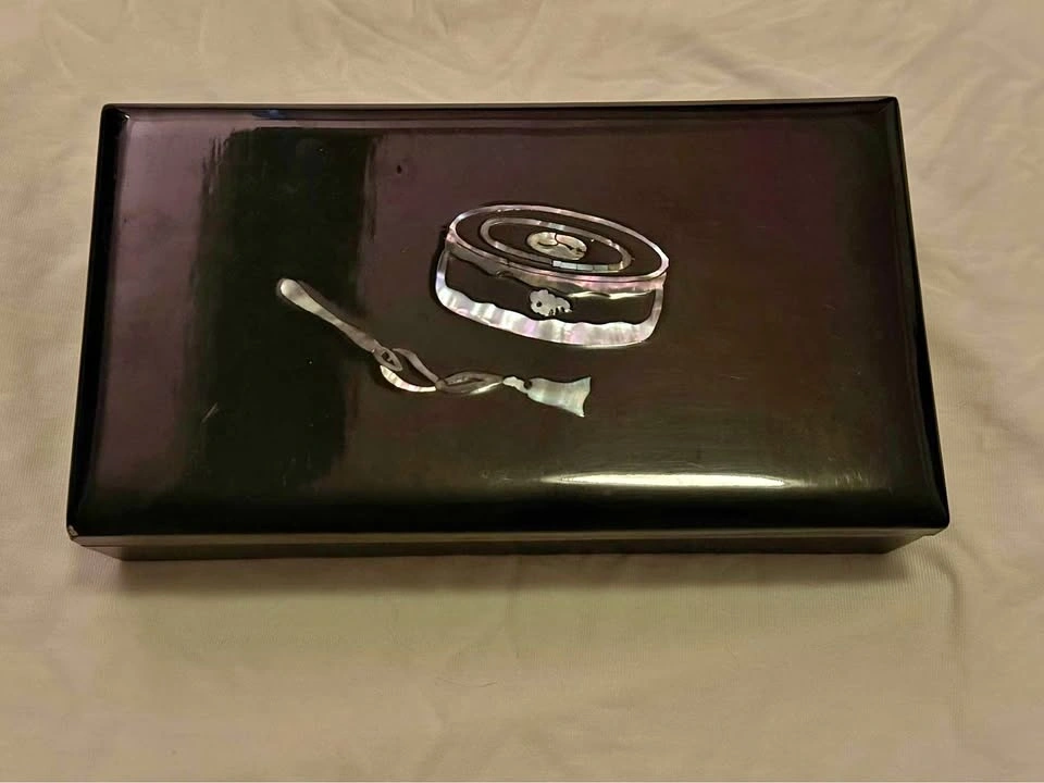 Buy & SellVintage Black Lacquer Jewelry Box with Mother of Pearl InlayVintage Black Lacquer Jewelry Box with Mother of Pearl Inlay$24Beautiful decorative storage box for jewelry, keepsakes, or small items. Great condition with light signs of wear. Pickup near Don Mills.WHERE TO MEETFreshCoView MapSELLERverifiedRiannaDon Mills731 review0 chats·0 favorites·13 viewsSEND CHAT TO SELLERHi Rianna! I’m interested in your listing.Hi Rianna! I’m interested in your listing.Get the Karrot app to chatSign In to chat