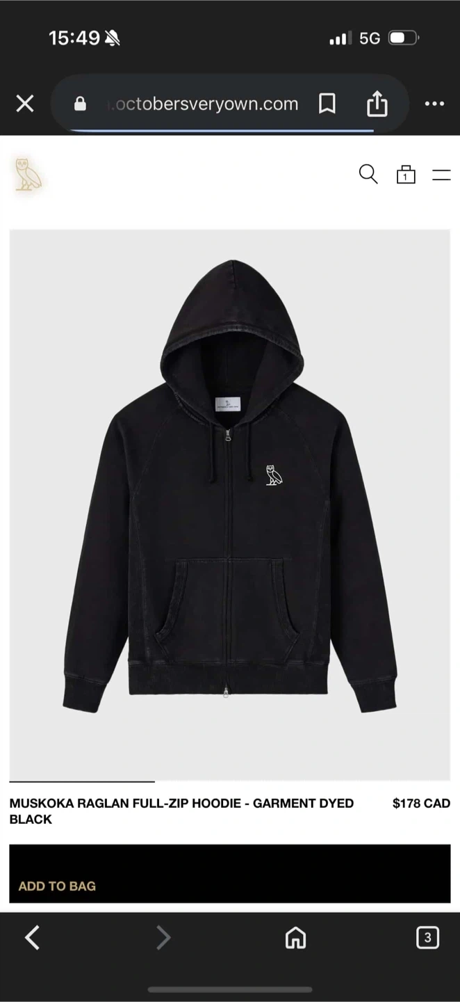 OVO muskoka zip hoodie