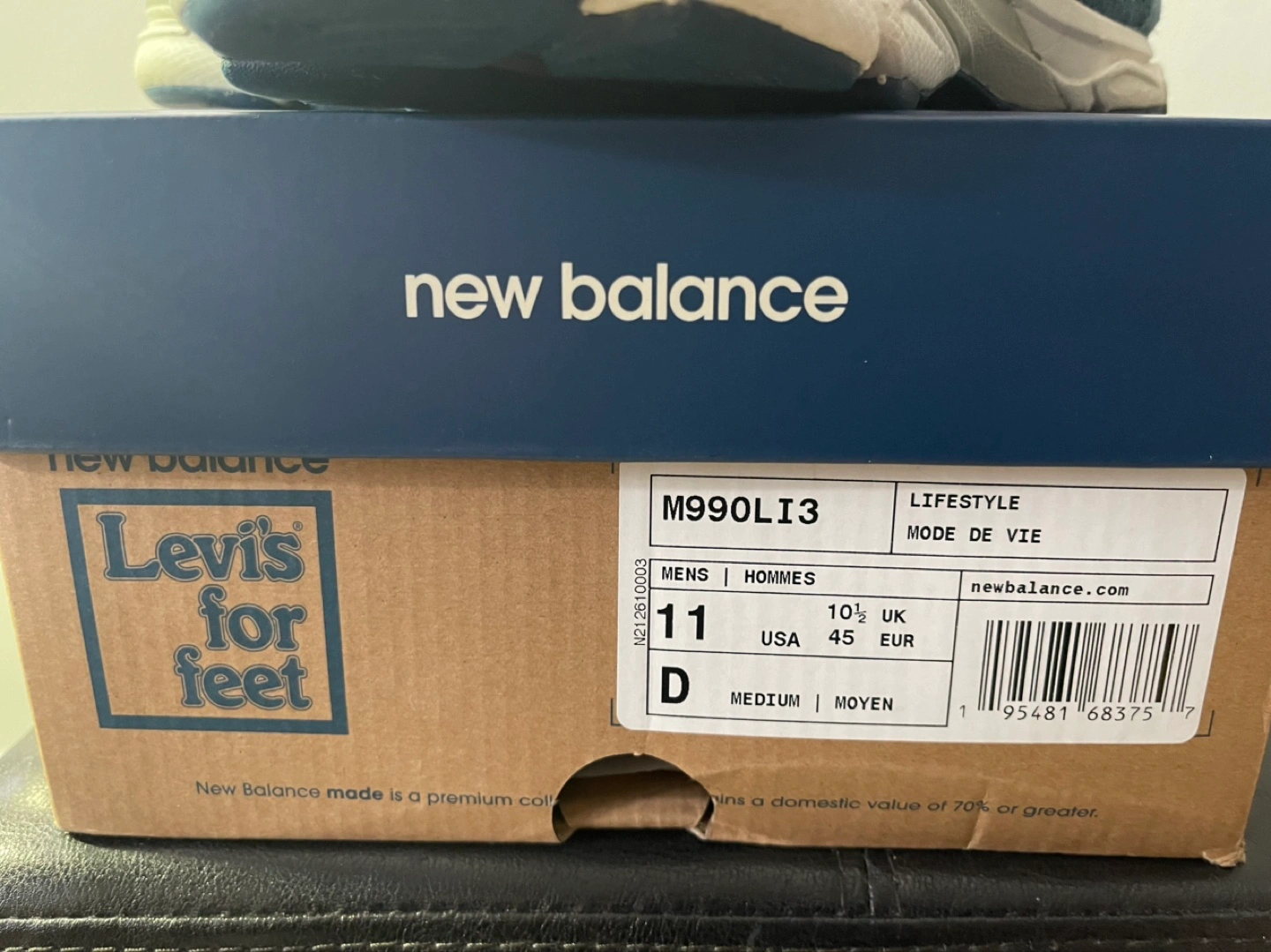 New Balance 990L3 Levi's for Feet Denim Sneakers - Size 11