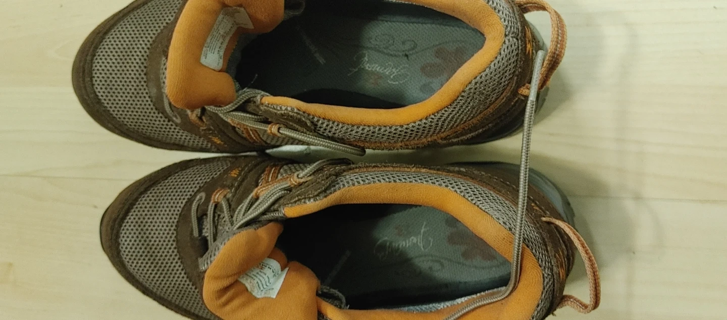 Selling a pair of Garmont women's Amica brown suede and mesh trail hiking shoes in size 8.5. They're in nearly New condition and ready for some outdoor adventures! The shoes feature Gortex and a durable Vibram sole for great traction. They come in a brown and orange colour combination. The size is US 8.5 / EUR 40