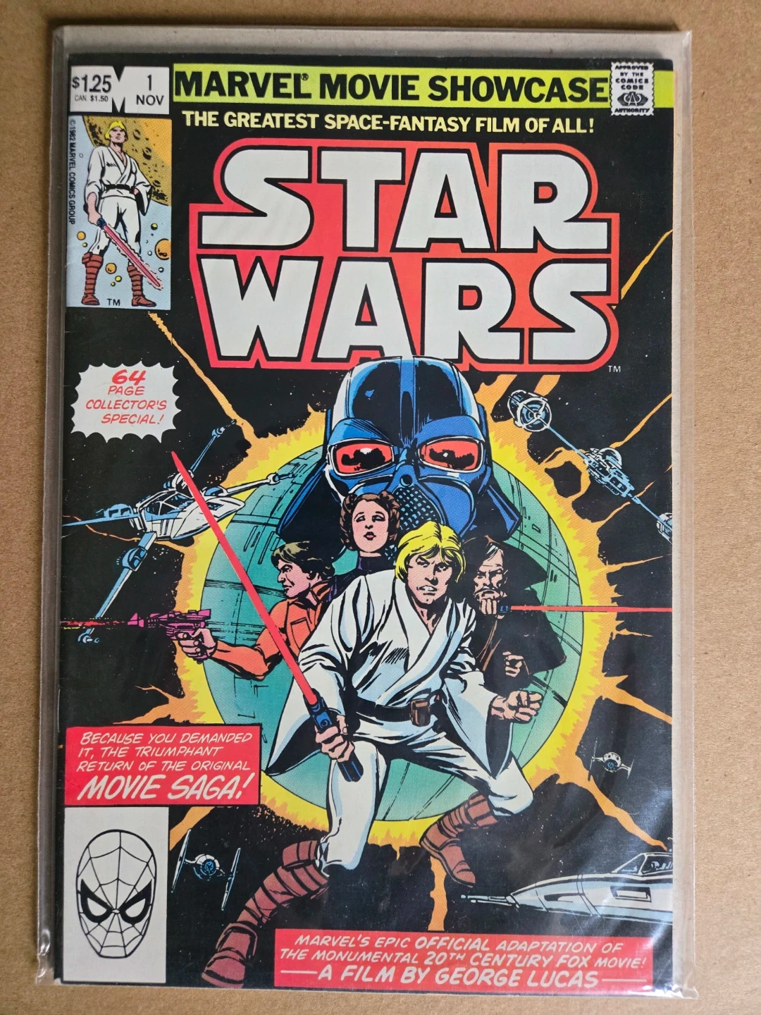 Marvel Movie Showcase Star Wars comic book, issue number 1. This is a 64-page collector's special, the official adaptation of the monumental 20th Century Fox movie.