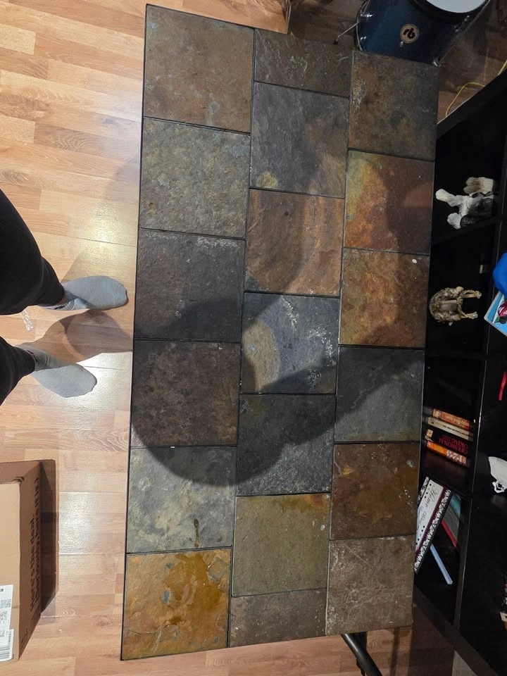 There is a coffee table set that matches perfectly. It's a metal frame (no rust) and tiled surface - no damage. If you’re interested the coffee table set is $120 or take everything for $190.