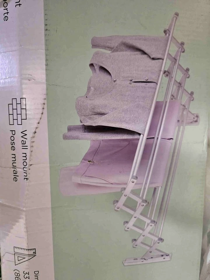 This type A expandable dryer is a versatile and space-saving solution for drying your clothes. This compact drying rack can be easily mounted with the included hardware, making it perfect for any living space. When not in use, it collapses.