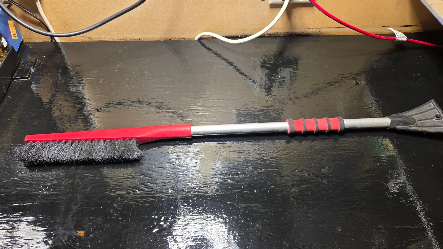 This is a snow brush and ice scraper combo tool. It features a brush on one end and a scraper on the other, with a telescopic handle for extended reach. The handle has comfortable grips for easy use. It's perfect for clearing your windshield and car windows during winter weather.