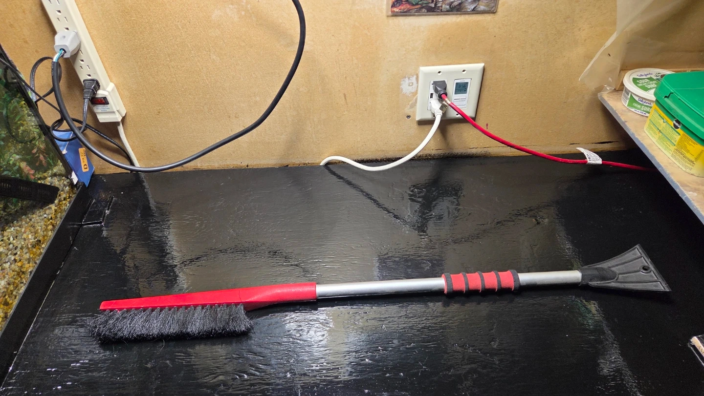 This is a snow brush and ice scraper combo tool. It features a brush on one end and a scraper on the other, with a telescopic handle for extended reach. The handle has comfortable grips for easy use. It's perfect for clearing your windshield and car windows during winter weather.
