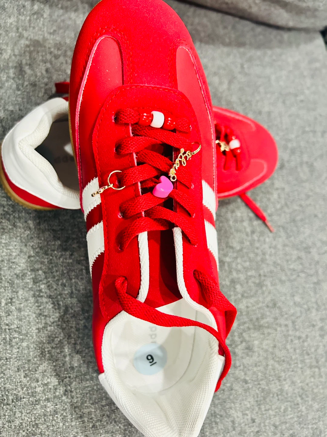 Selling a pair of Madden girl sneakers in red and white. They are in great condition and are a women's size 9- never been worn. Got as a gift but don’t have any use of it. No box -