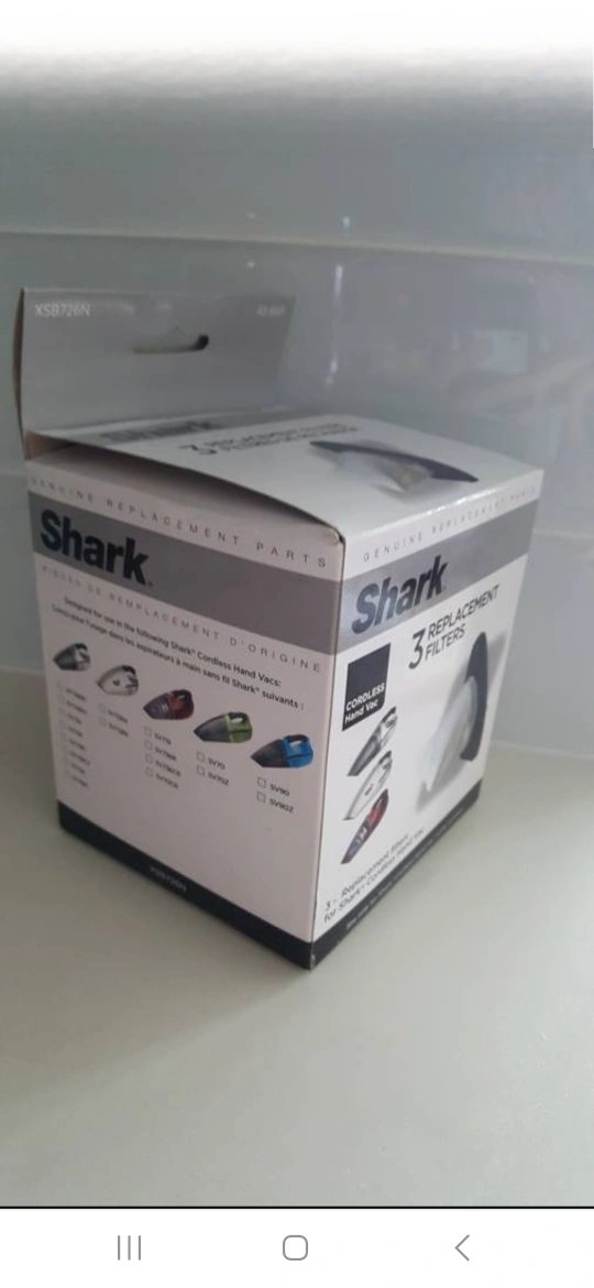 Genuine Shark replacement filters. Three filters included. Fits various Shark cordless hand vacuums. New in box.