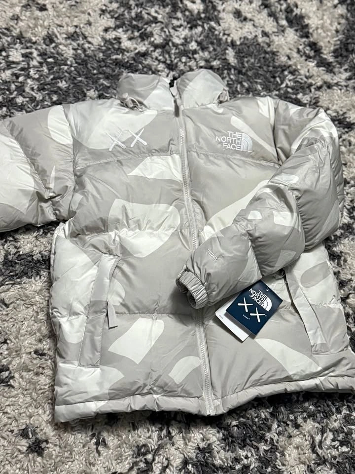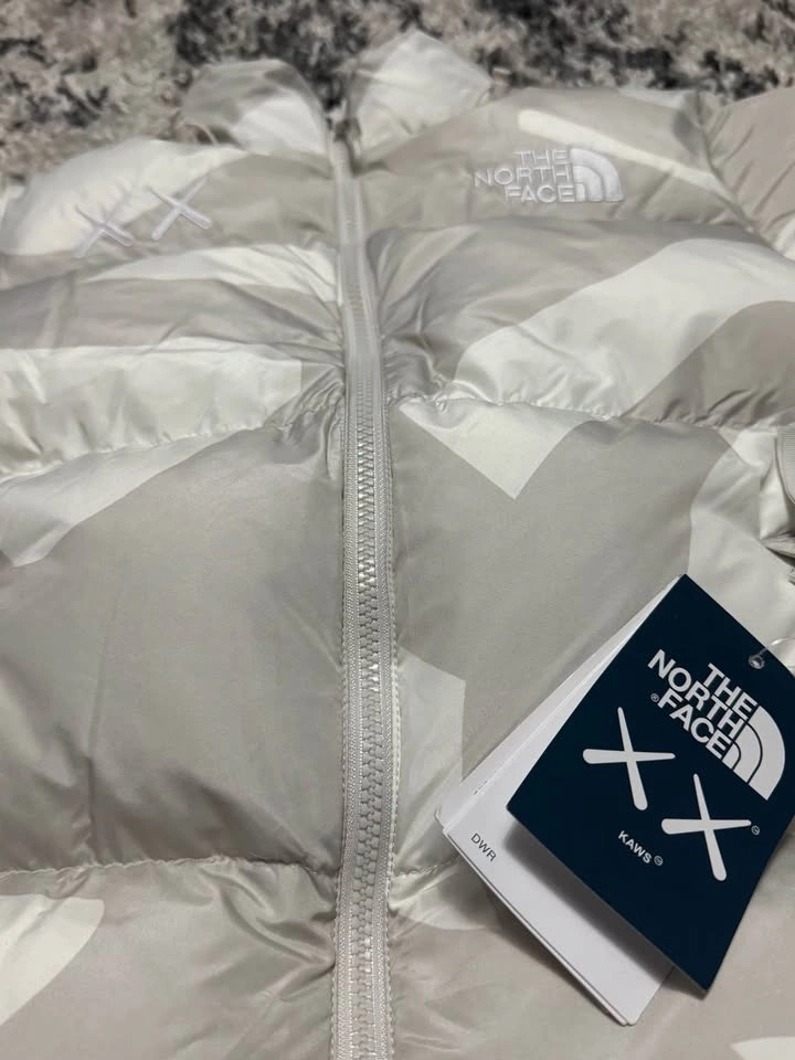 Brand new, premium quality The North Face x KAWS Puffer Jacket in Moonlight Ivory, Size Medium. This jacket features high-quality down filling for warmth and lightness, flawless stitching, crisp embossing and embroidery, and a smooth YKK zipper. It's in brand new condition with no damages or wear. Pickup available in Milton. Happy to provide more photos or a video if needed. Jacket: $240