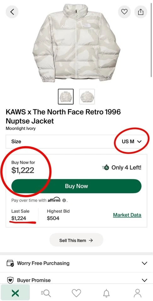 The North Face x KAWS Puffer Jacket – Size M