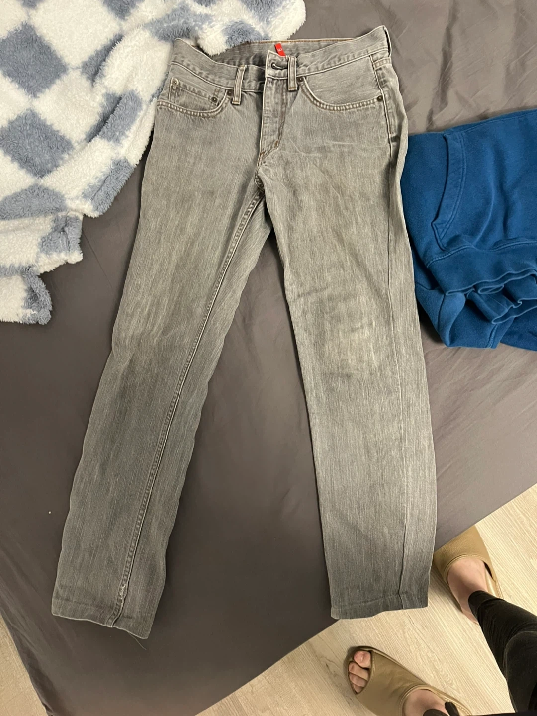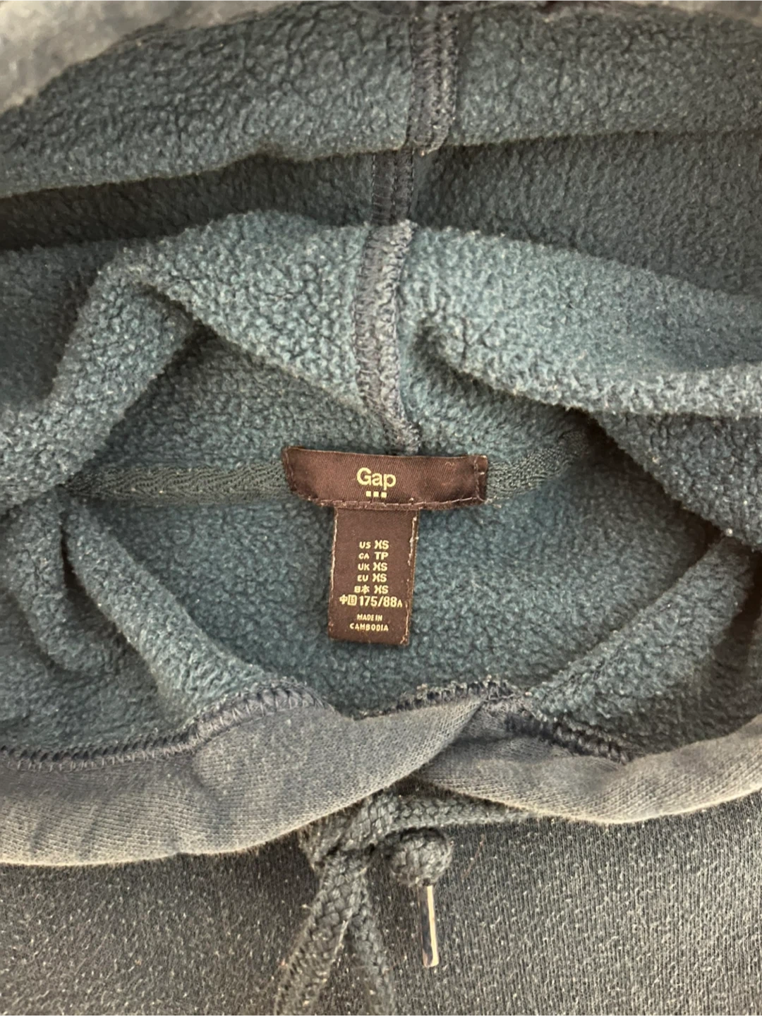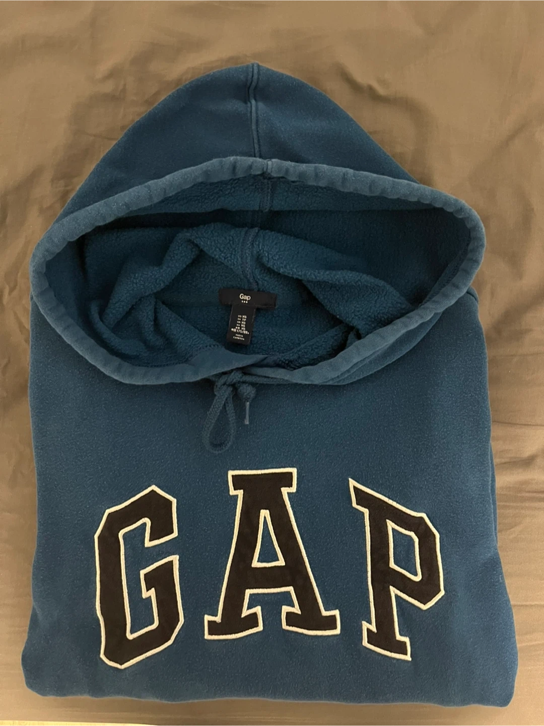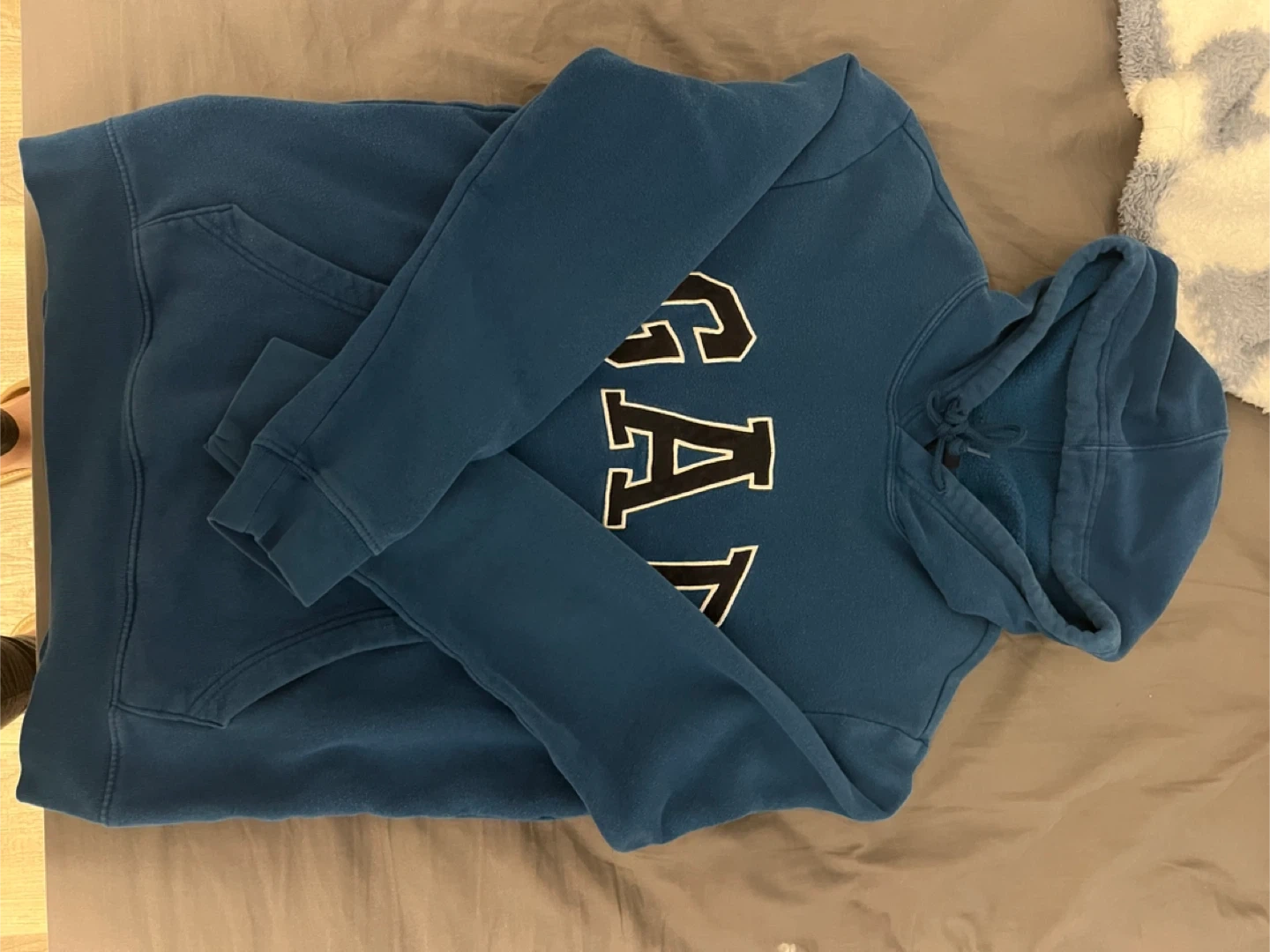 Blue Gap hoodie with a logo graphic. Grey wash jeans are also included. Both are size XS.