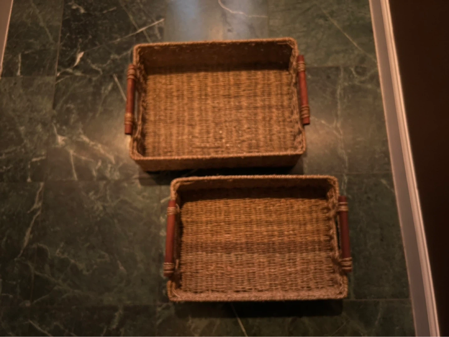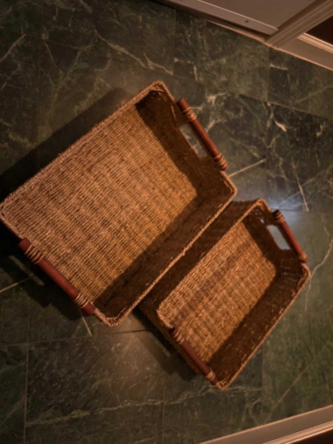 Buy & SellWoven Trays with Handles - Set of 2Woven Trays with Handles - Set of 2$10Set of two woven rectangular trays. Each tray features wooden handles. They're perfect for organizing or servingConditionGoodWHERE TO MEETWalmart SupercentreView MapSELLERverifiedMimioyOdlin Wood1104 reviews0 chats·1 favorites·6 viewsSEND CHAT TO SELLERHi Mimioy! I’m interested in your listing.Hi Mimioy! I’m interested in your listing.Get the Karrot app to chatSign In to chat
