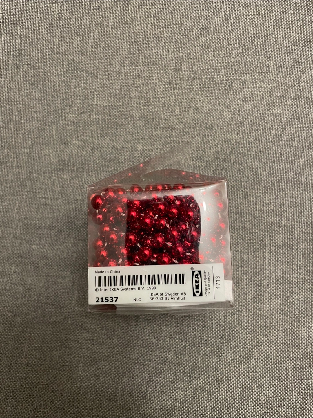 A brand new IKEA red bead garland decoration, still in its original packaging! Perfect for adding a festive touch to your home decor.