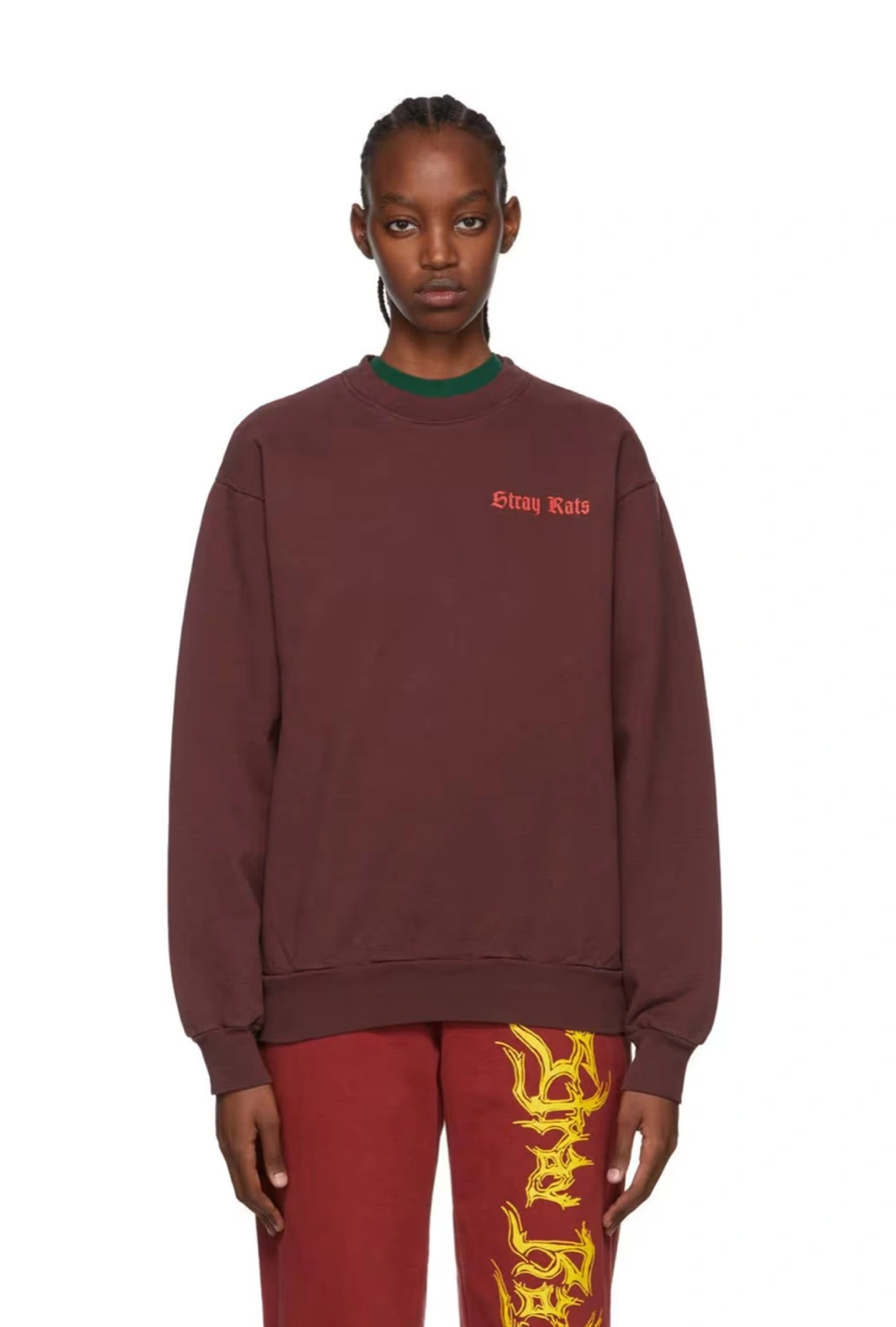 Stray Rats Maroon Brown Cotton Sweatshirt