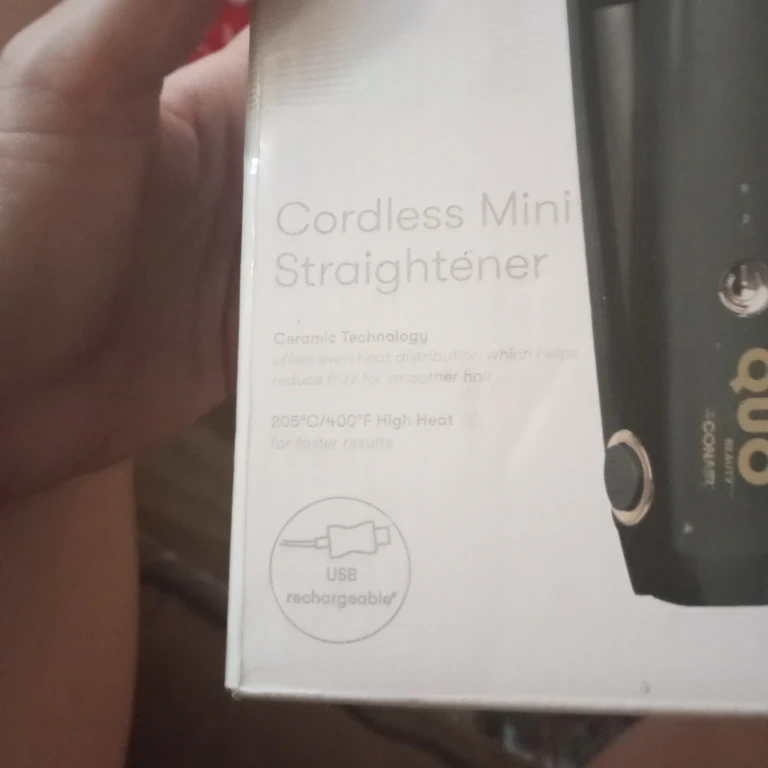 This is a cordless mini straightener with ceramic technology for smoother hair. It offers 205°C/400°F high heat for faster results. It's USB rechargeable.