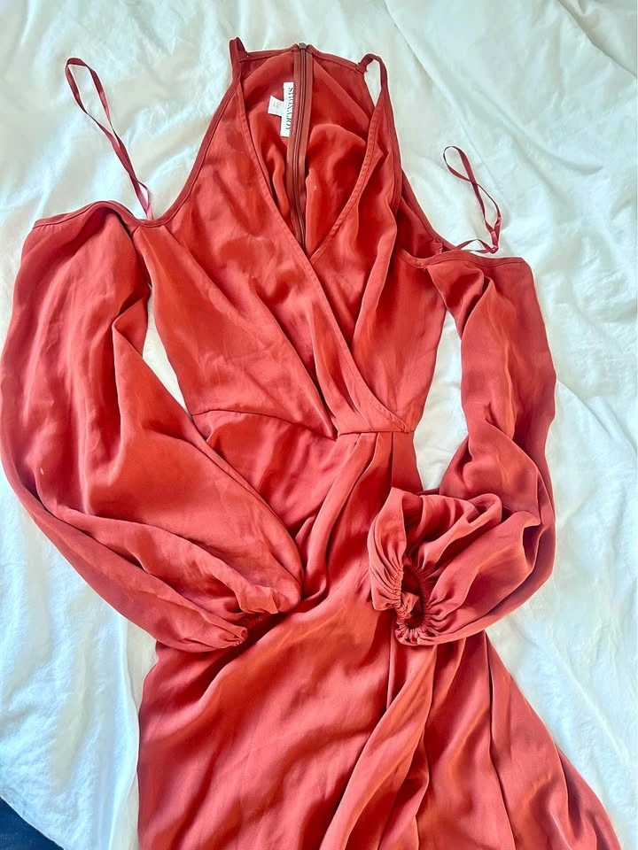 Moving closet sale! Party dress with puffed sleeves and off-the-shoulder design. Barely worn, no damages, in good condition. Size 12 AUS/US8. Pick up only at Coquitlam Library.