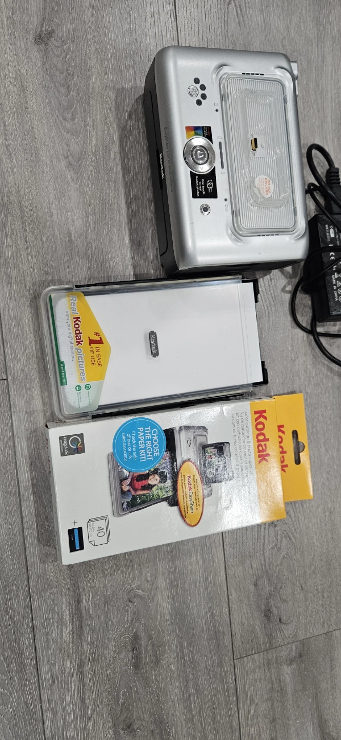 This Kodak digital camera comes with a photo printer and two packs of Kodak photo paper. It also includes a power adapter and a wrist strap. Capture and print your memories instantly!