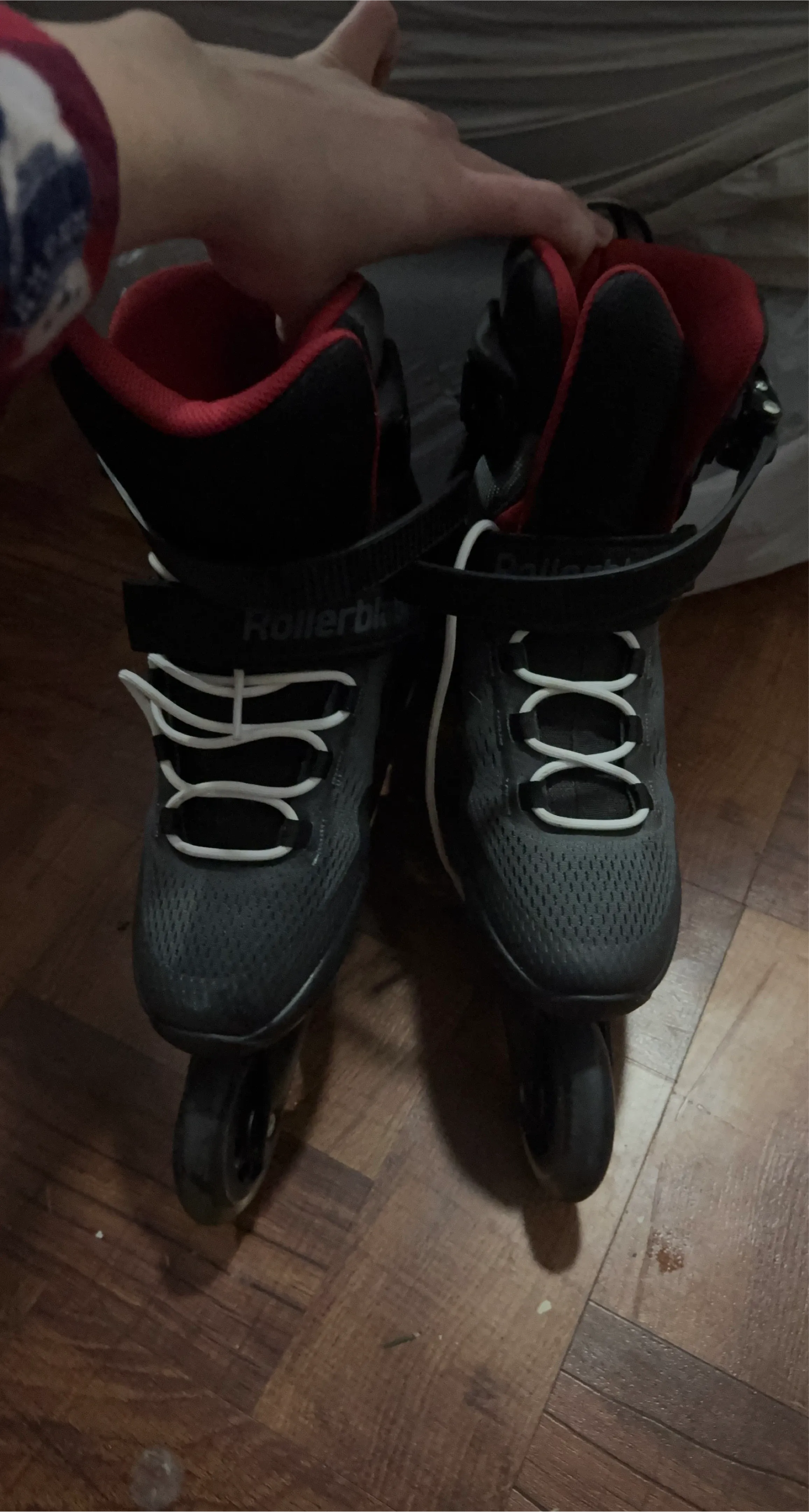 Selling a pair of Rollerblade inline skates. They are black with red lining and white laces. Great for recreational skating!