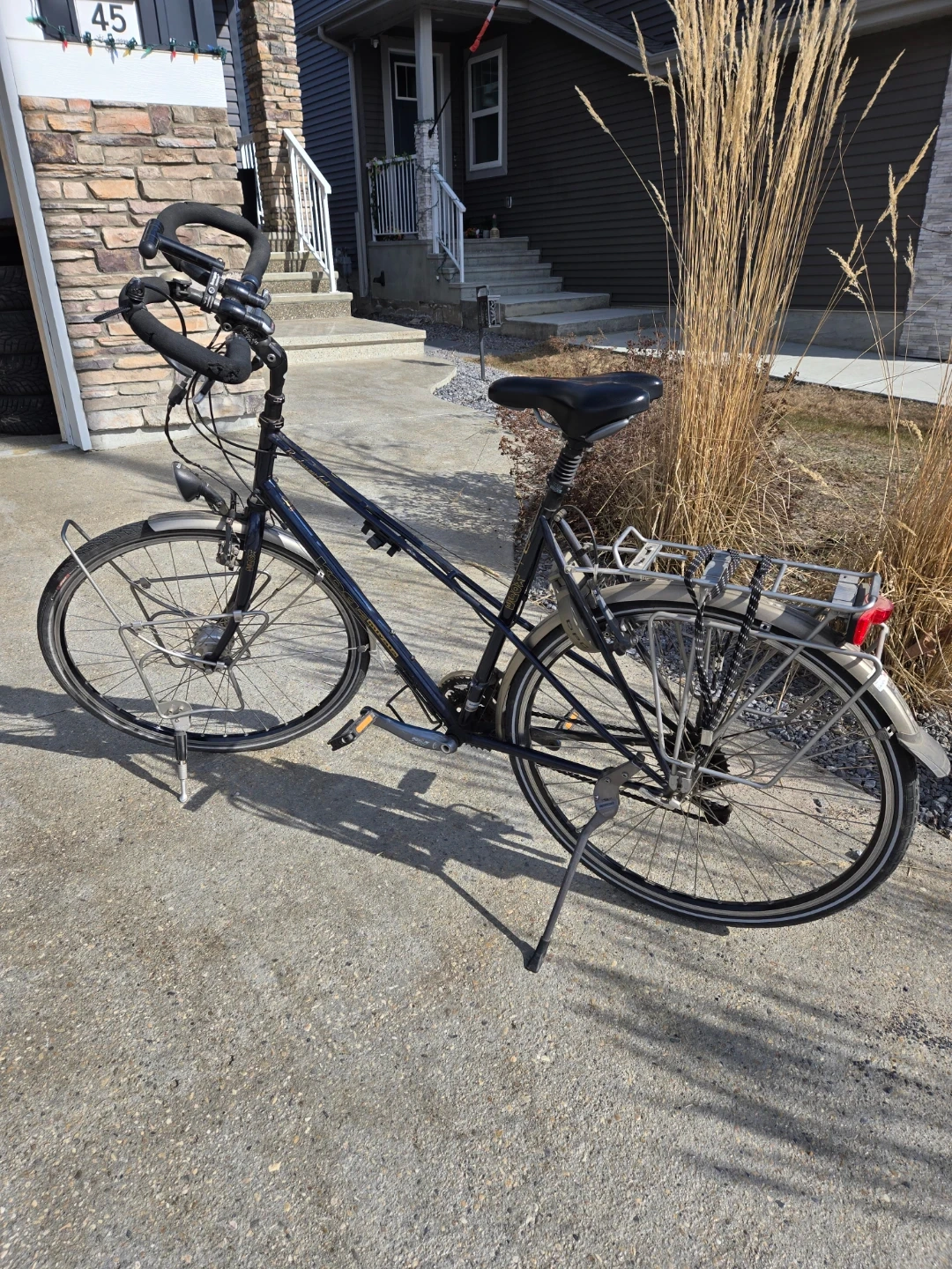 Classic Koga Miyata Randonneur Lady touring bicycle in great condition. Built in the Netherlands, this bike is known for its high‑quality steel frame, smooth ride, and exceptional durability—ideal for touring, commuting, or long weekend rides. Will fit all your outdoor gear with extended bag carriers on front.