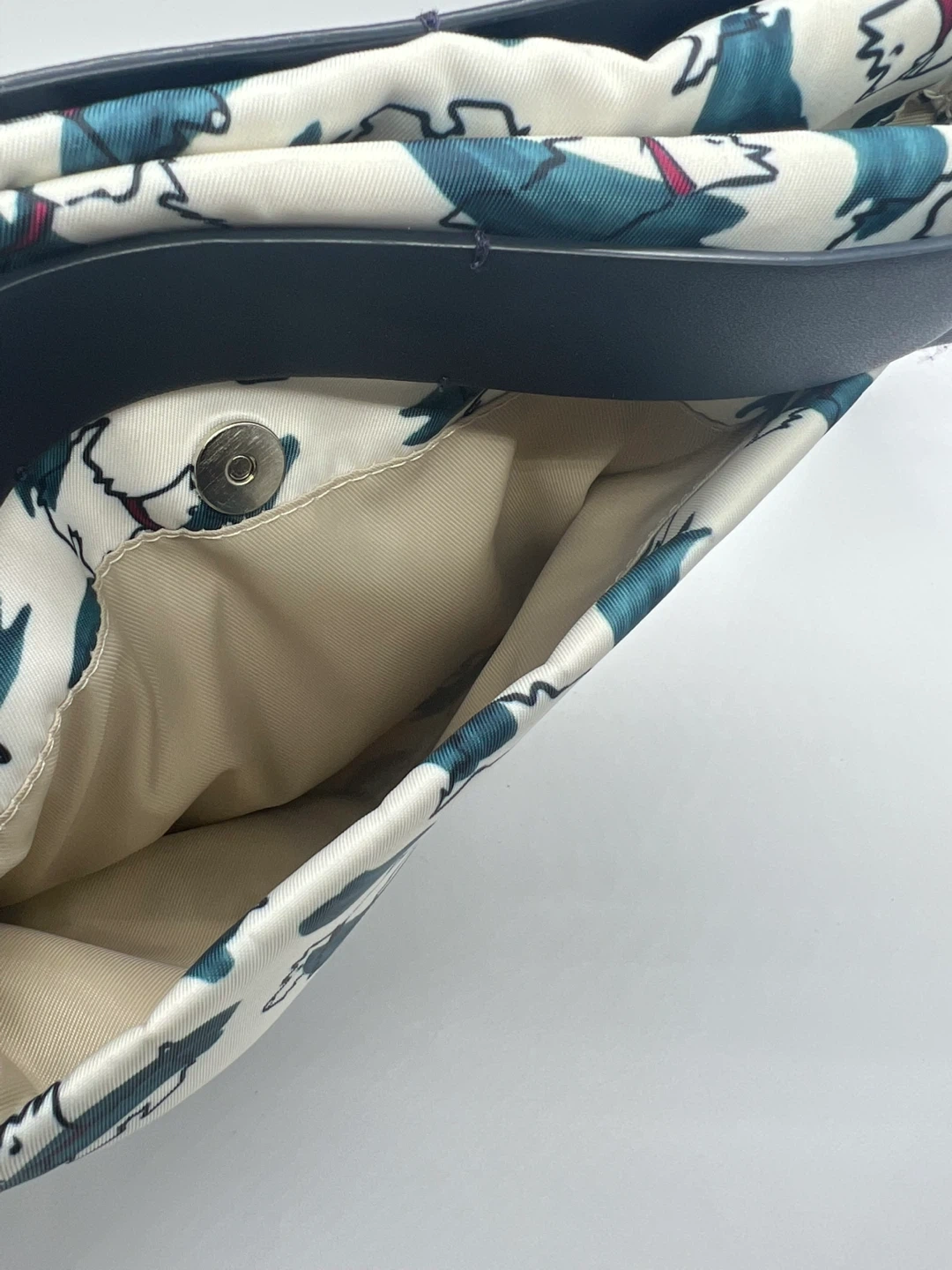 Missing dog charm. Faint color transfer at the back towards the bottom.