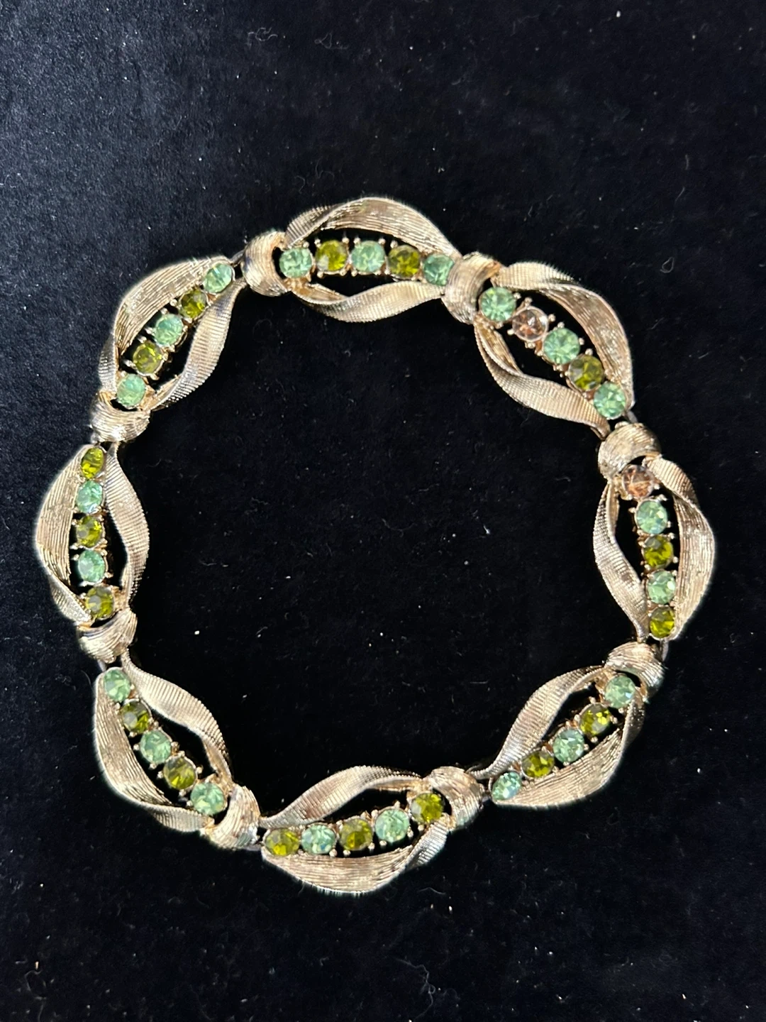 Gold-tone Bracelet with Green Rhinestones
