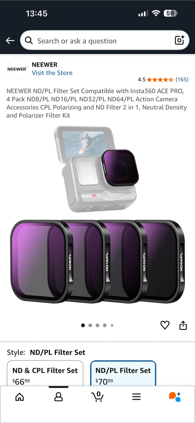 Selling a NEEWER ND/PL Filter Set compatible with Insta360 ACE PRO. It includes 4 pack ND8/PL ND16/PL ND32/PL ND64/PL Action Camera Accessories CPL Polarizing and ND Filter 2 in 1, Neutral Density and Polarizer Filter Kit. The box is included