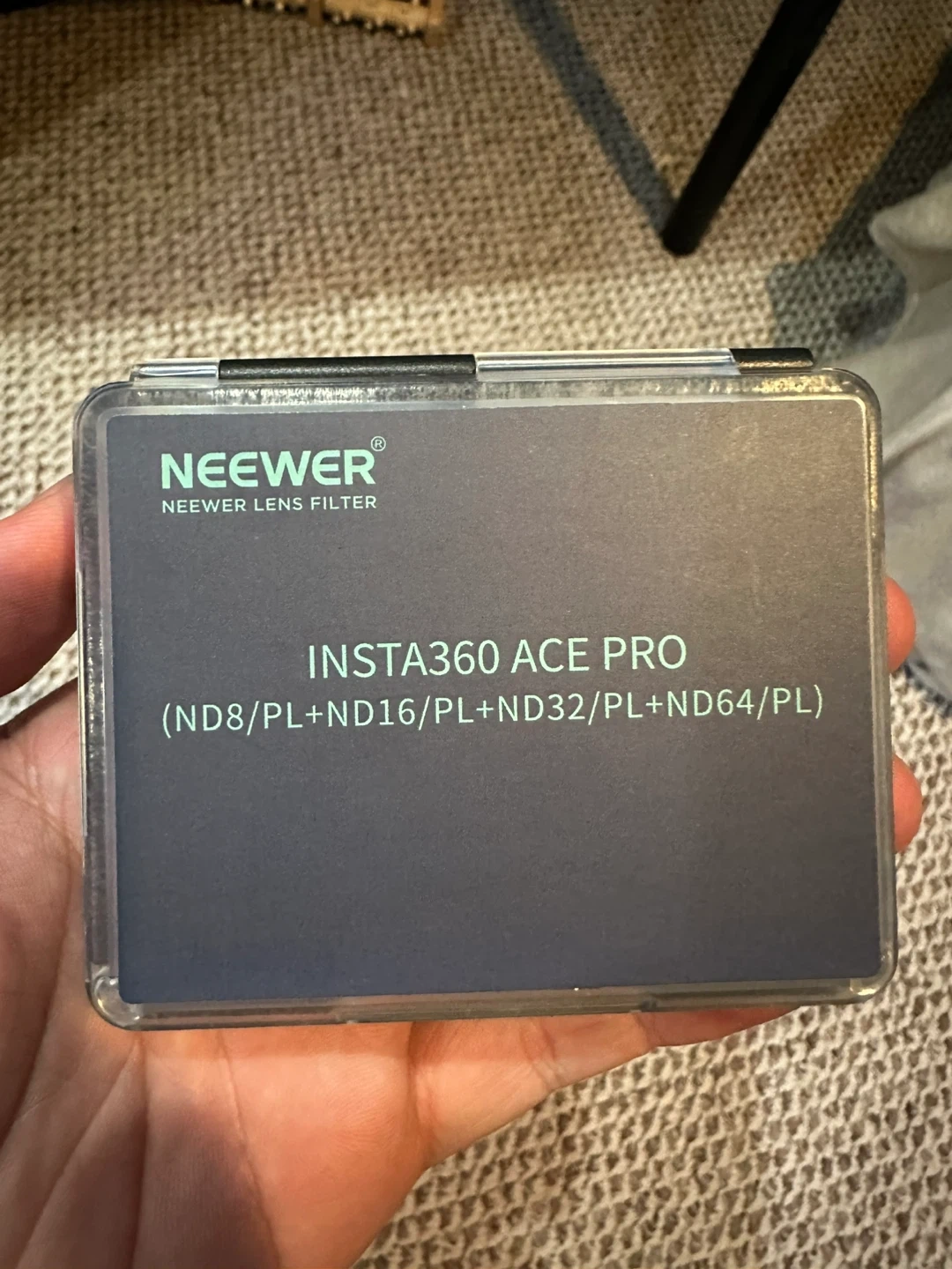 Selling a NEEWER ND/PL Filter Set compatible with Insta360 ACE PRO. It includes 4 pack ND8/PL ND16/PL ND32/PL ND64/PL Action Camera Accessories CPL Polarizing and ND Filter 2 in 1, Neutral Density and Polarizer Filter Kit. The box is included