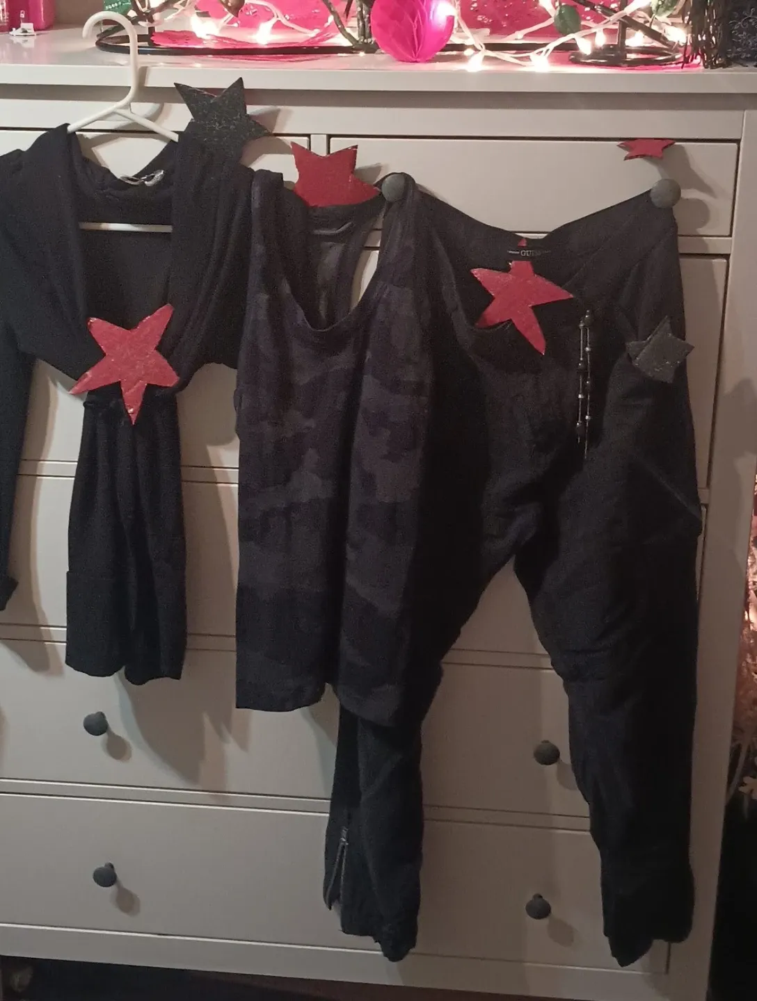 This set includes a black camouflage tank top and black guess pants, never wore them ,size 29 . The pants have a zipper detail at the ankle. It's a stylish combo for any casual occasion! Super comfy!