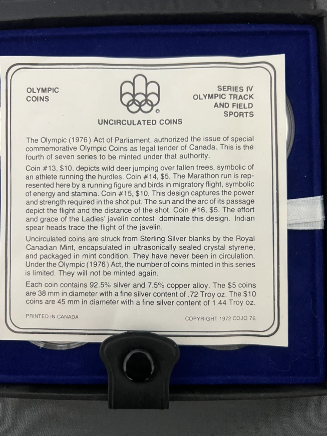 @spot .925 Sterling 1976 Montreal Olympics Coin Set