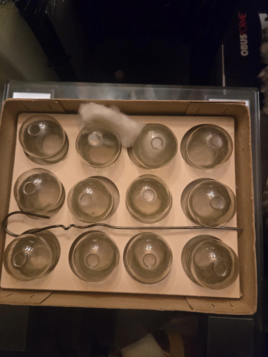 This is a set of 12 cupping glasses. They are made of glass and come in their original box. This set was made in Poland.probably made in 1945 during WW2 . I got it form my aunt .