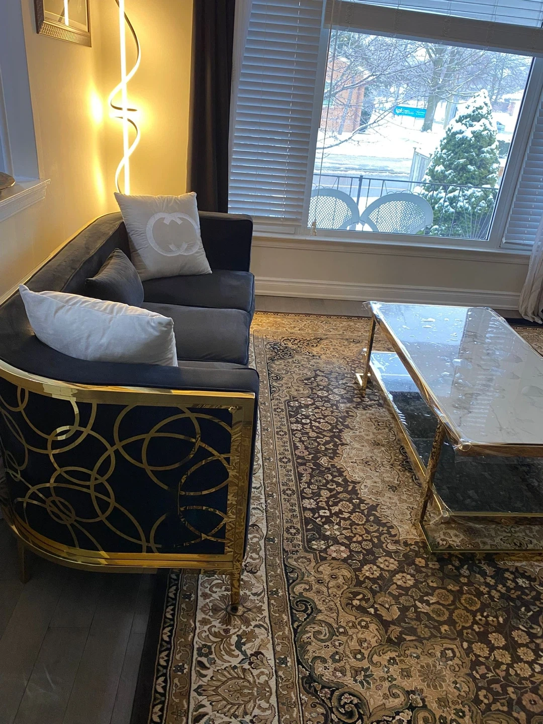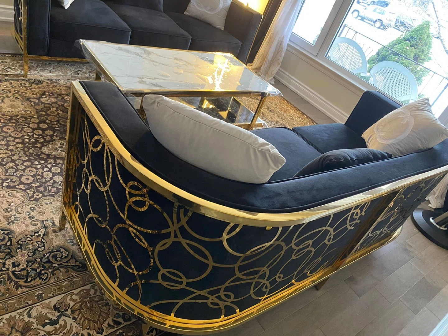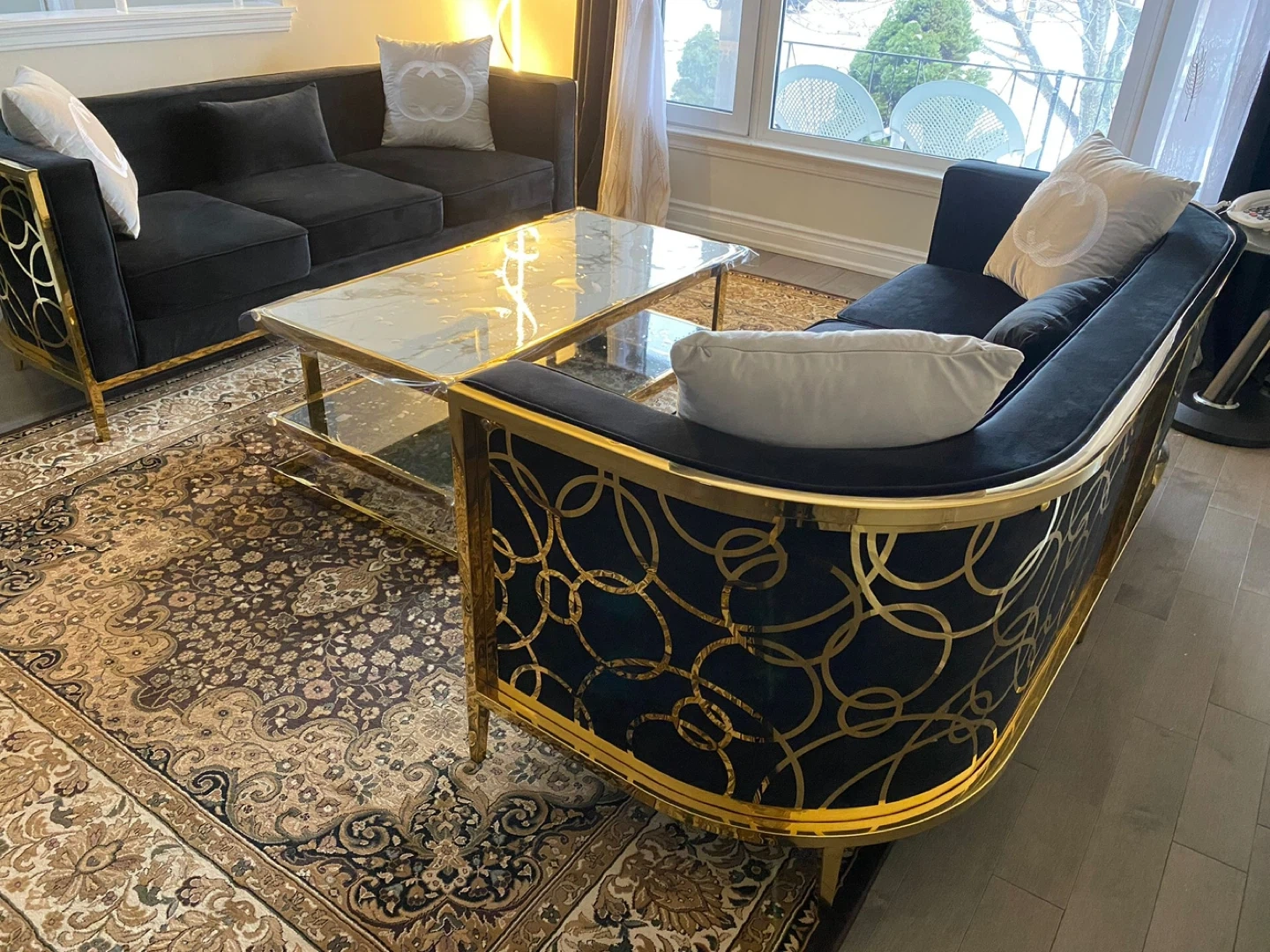 Set of two : Black Velvet Sofa with Gold Accents like new