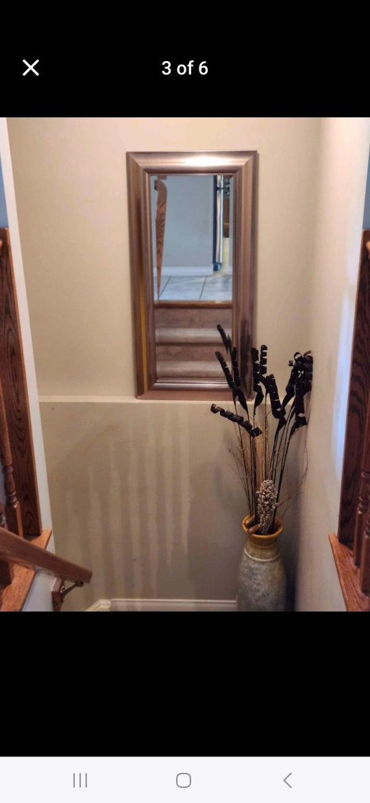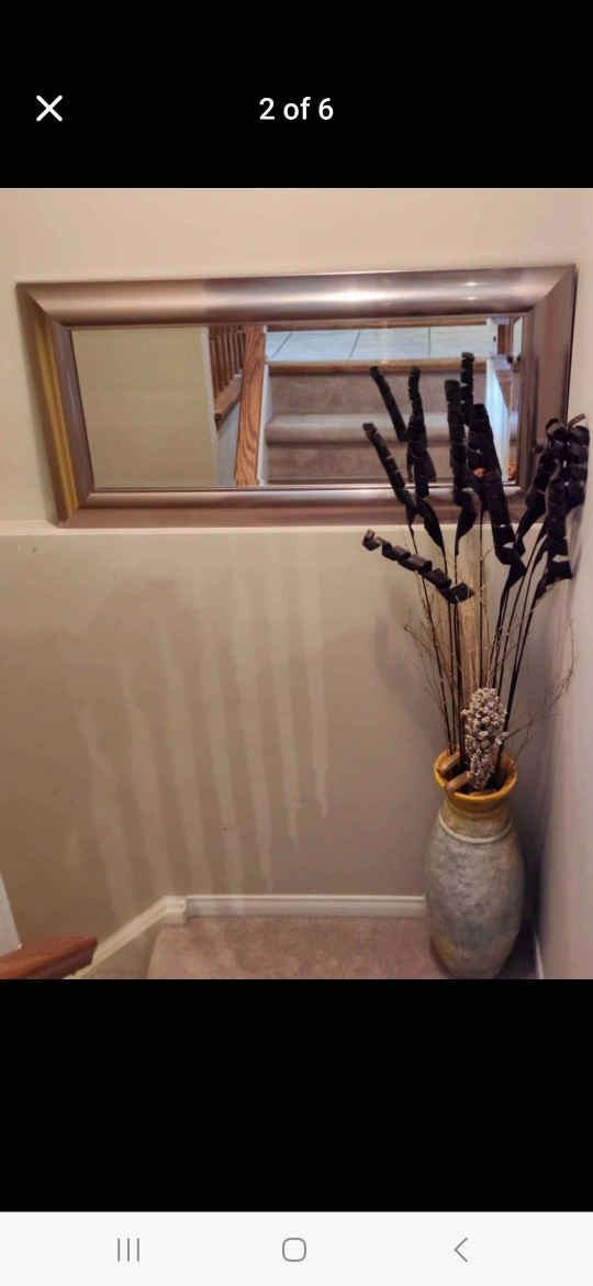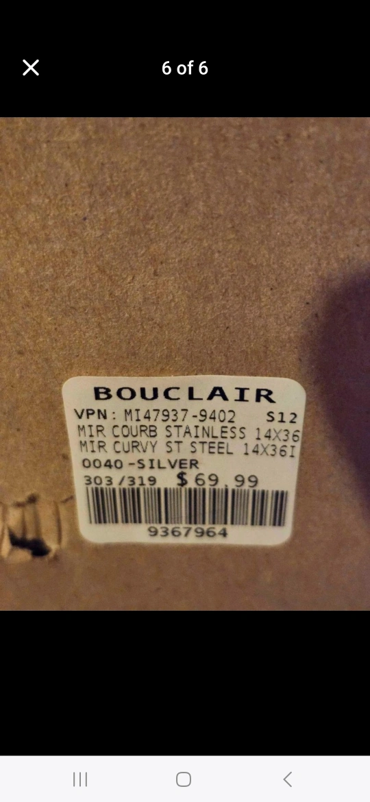 Large, matte silver framed mirror, in good codition. The boarder has a subtle mark reflected in price.