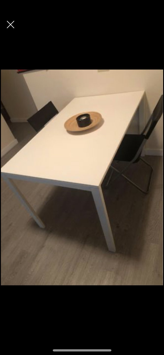 IKEA White TV Stand & Black Desk & Folding Chair