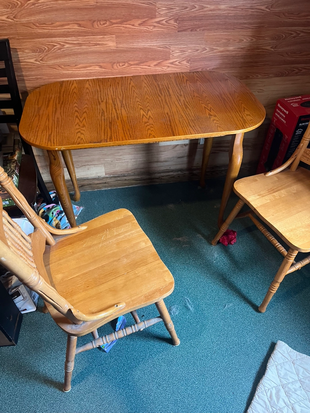 HomeBuy and sellTable and Two ChairsStephenMurray582 reviewsTable and Two ChairsFurniture · $75Small kitchen table and two matching chairs. Good condition. Pick up only.Dimensions42” W 24” D 29” HWhere to meetMy house0 chats·1 favourite·54 viewsGet the Karrot app to chatOther listings by StephenShow allToronto Maple Leafs Mini Puck Collection$20MurrayPair of Vintage Glass Table Lamps$1,000MurrayNavarre Gold Tone Diamond Watch$100MurrayTable and Two Chairs$75MurrayVTech CM18245 4-Line Small Business Accessory Deskset$30MurrayBlack Backpack$5MurrayPopular on KarrotShow allCoffee Table$25TweedChina Cabinet$80TerminalLittle table$5StirlingBrand NEW 3 Piece Storage Queen BED With Sealy Queen Mattress$600PinecrestGlider Rocking Chair with Ottoman$50TrentonWooden Desk with Hutch$200Tweed