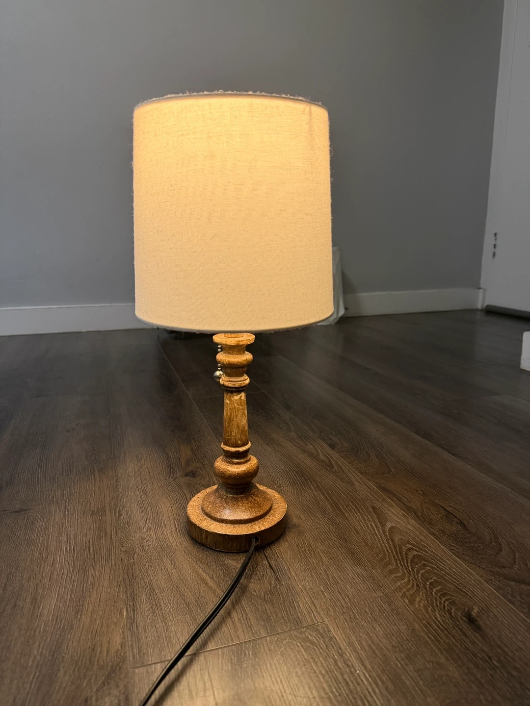 15Selling a lovely table lamp with a beige shade. It's in great condition and would look perfect on a bedside table or desk. The base is a nice wooden colour. It gives off a warm and inviting glow! Location : Main @ Danforth intersection, Toronto