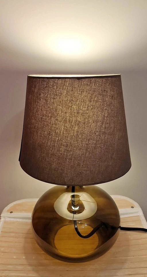 Glass base table lamp with new bulb. Wire is 2 meters long.