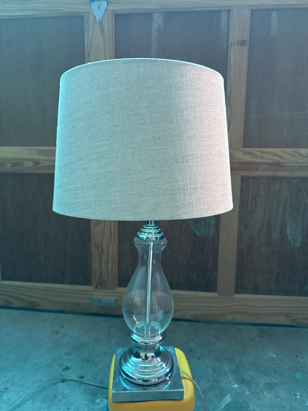 Selling a table lamp with a beige shade. It's in good condition and would look great in any room!