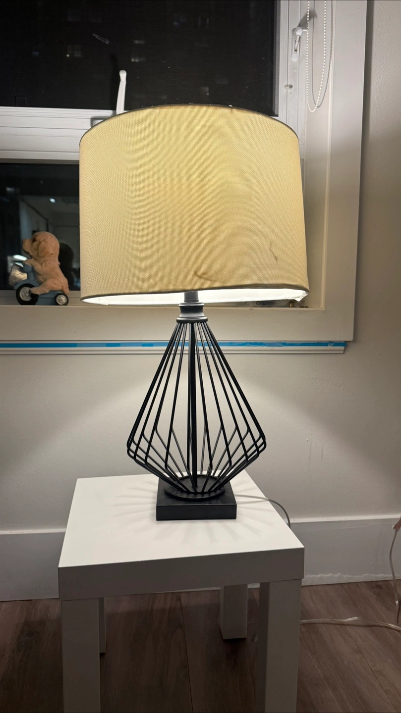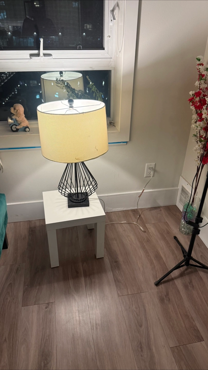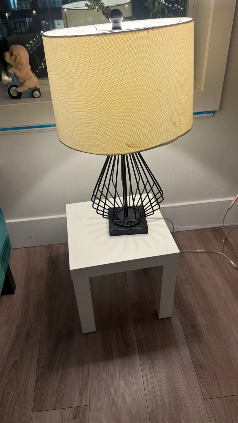 Selling a table lamp with a cream-coloured shade It sits on a small white table, which is included if you're interested. The lamp provides a nice ambient light, perfect for a bedroom or living room