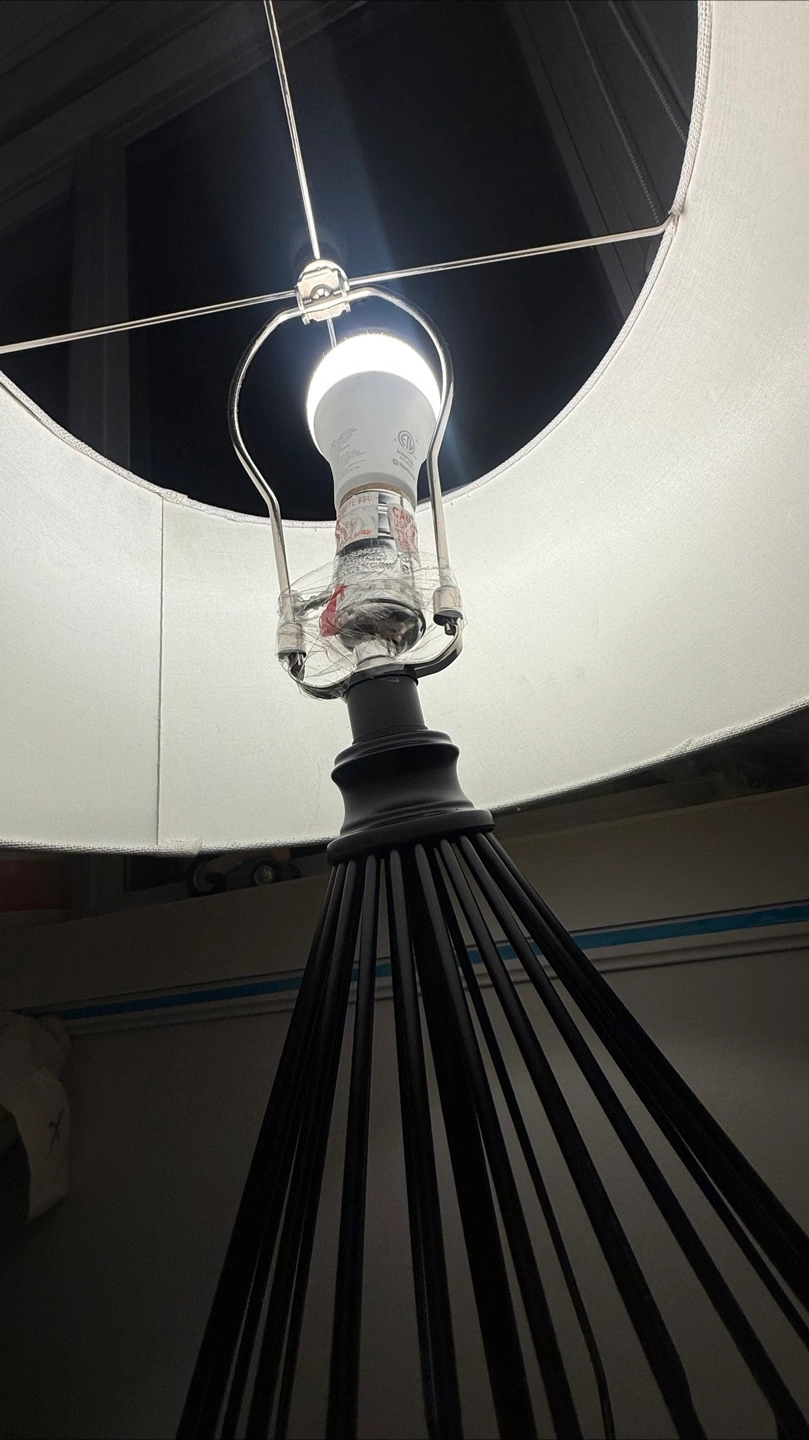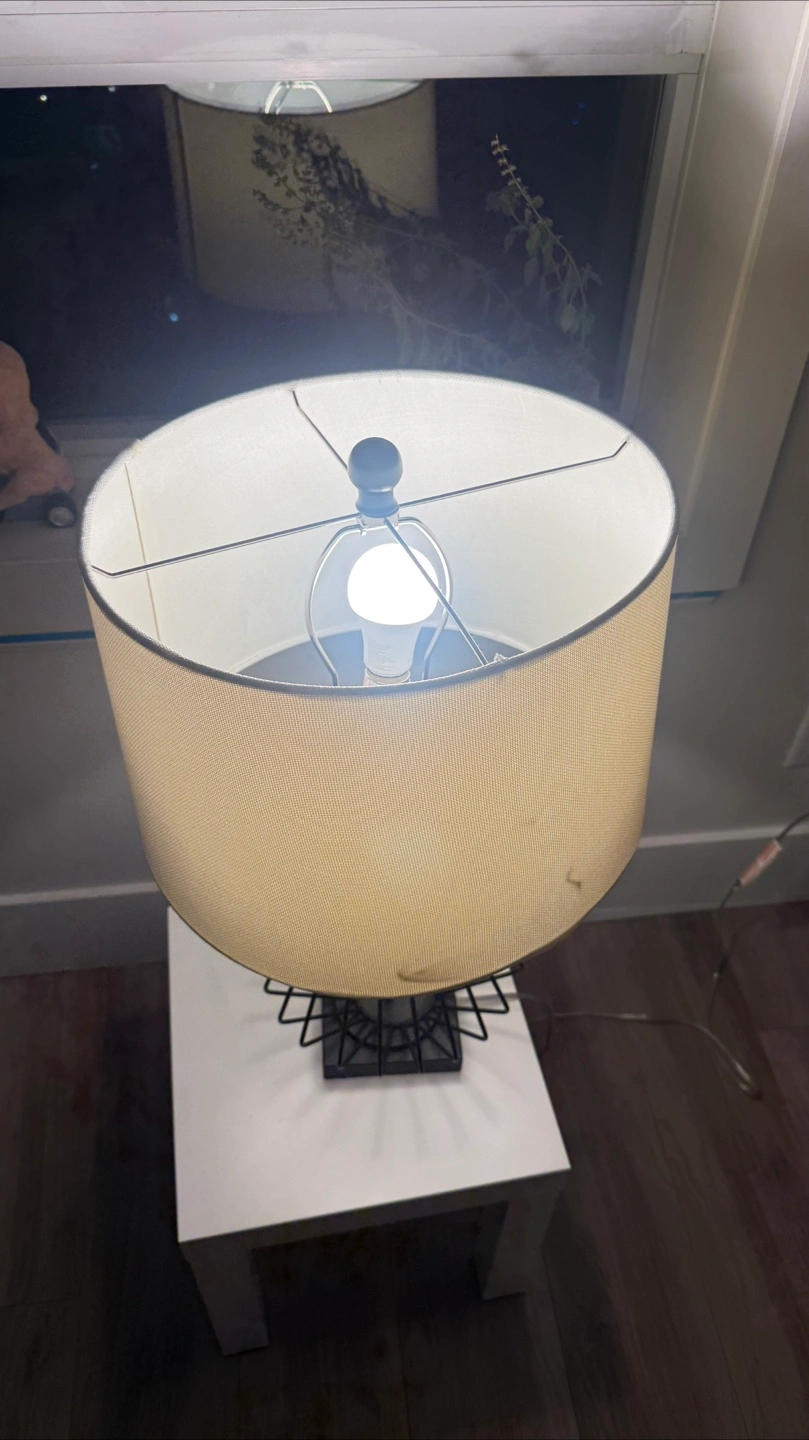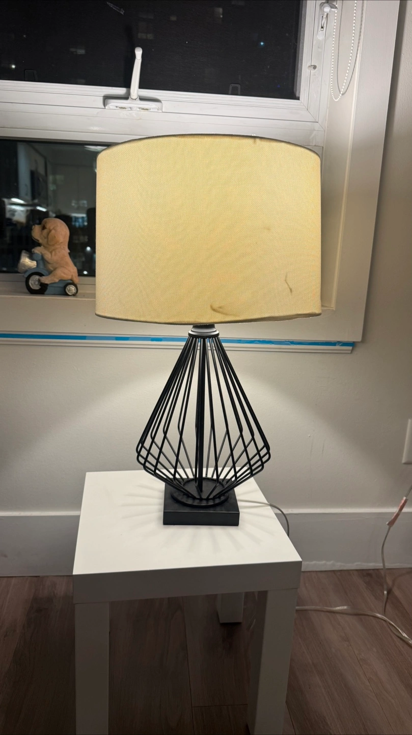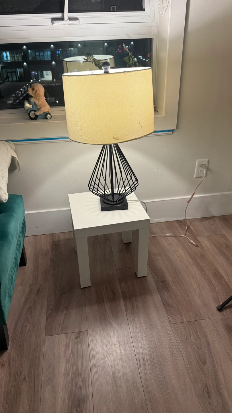 Selling a table lamp with a cream-coloured shade It sits on a small white table, which is included if you're interested. The lamp provides a nice ambient light, perfect for a bedroom or living room