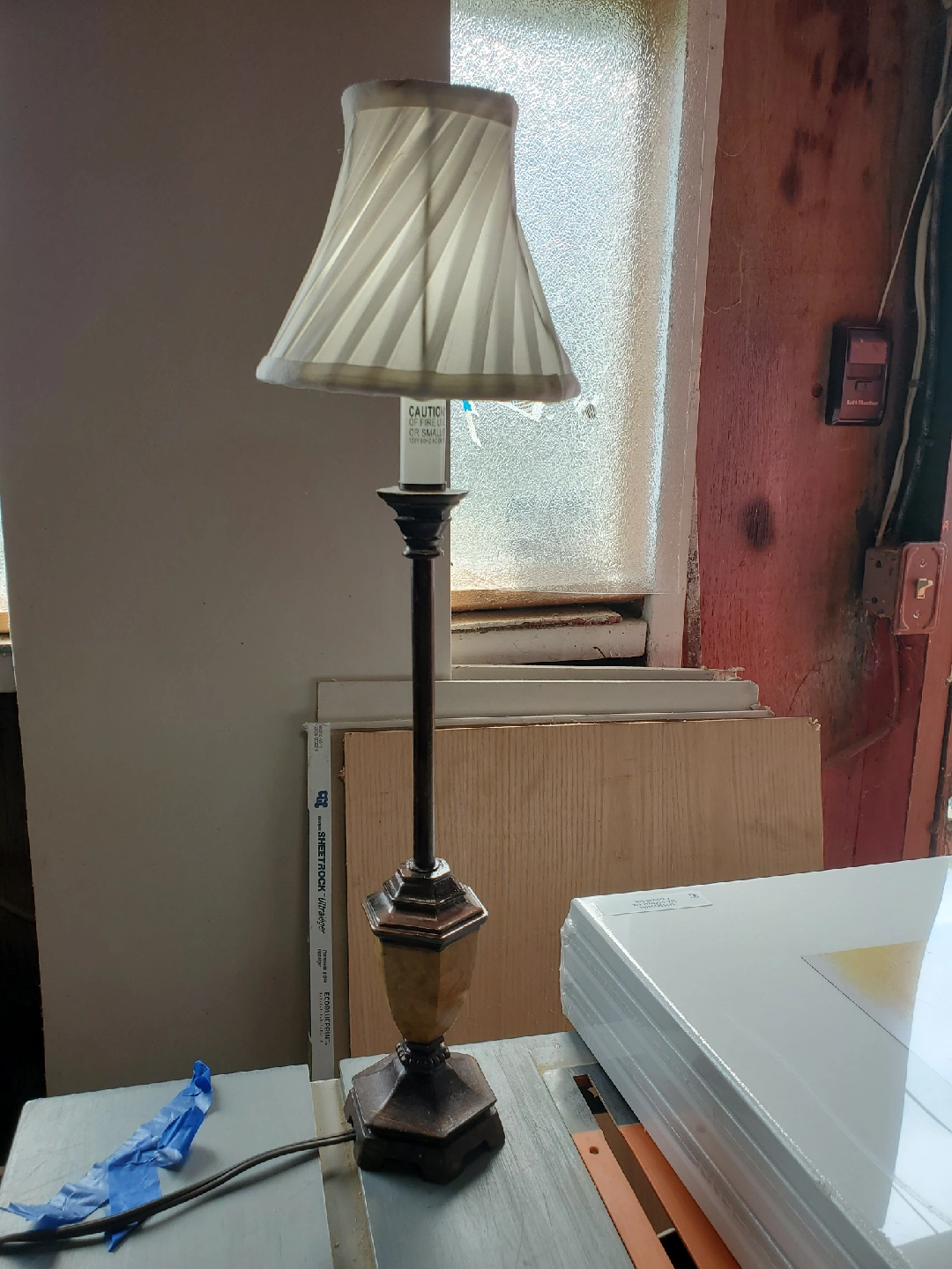 Selling a table lamp with a beige pleated shade. The base is a dark brown colour with a wood-look accent. Perfect for adding a warm glow to any room! manufactured in 2007 this brass style lamp is functioning perfectly