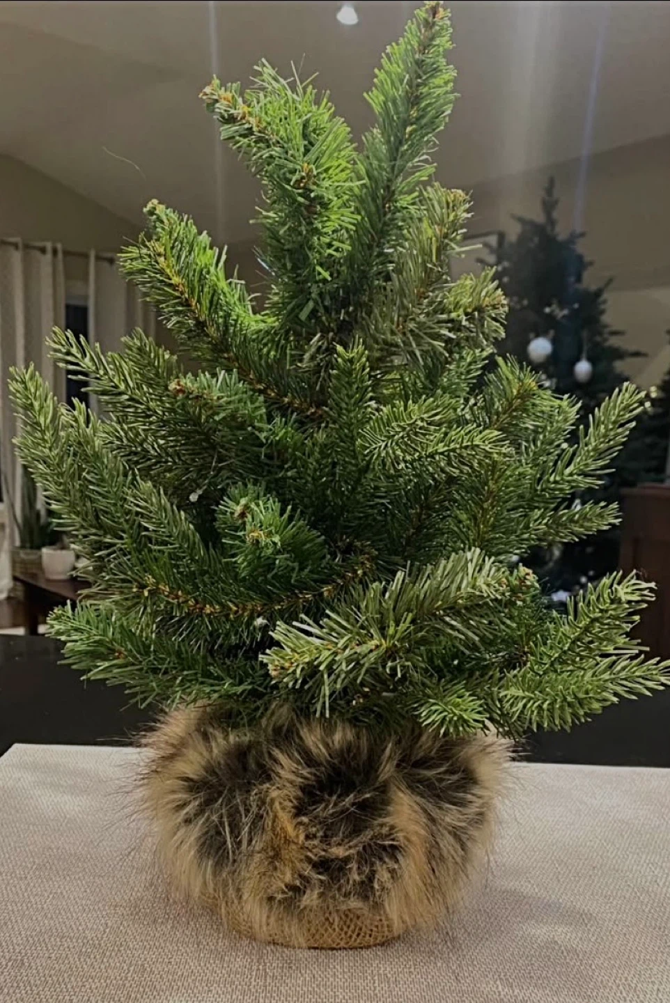 98A cute table, top Christmas tree, perfect for adding a touch of holiday cheer to any space Bottom lined with fake fur around it was originally from HomeSense
